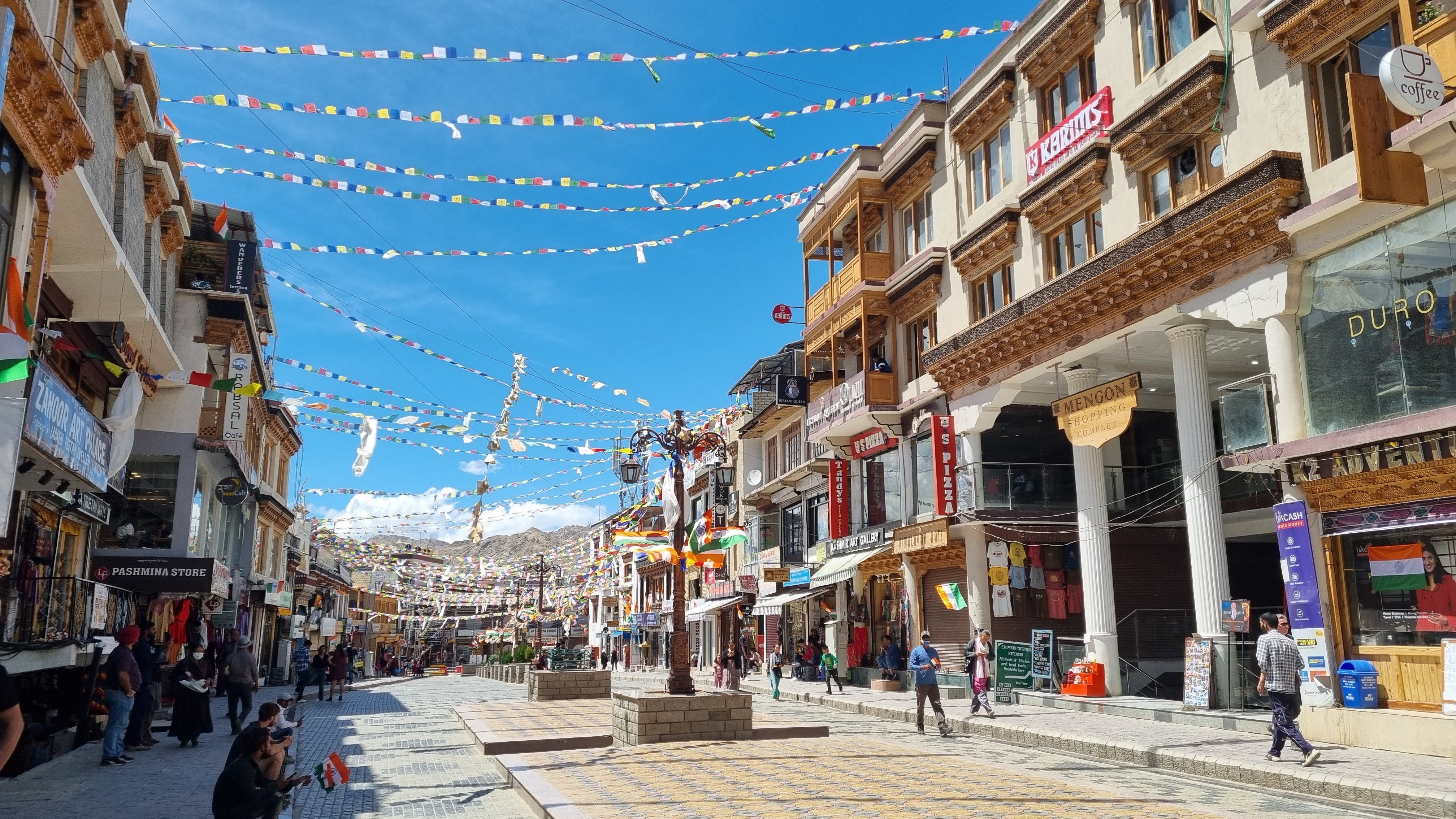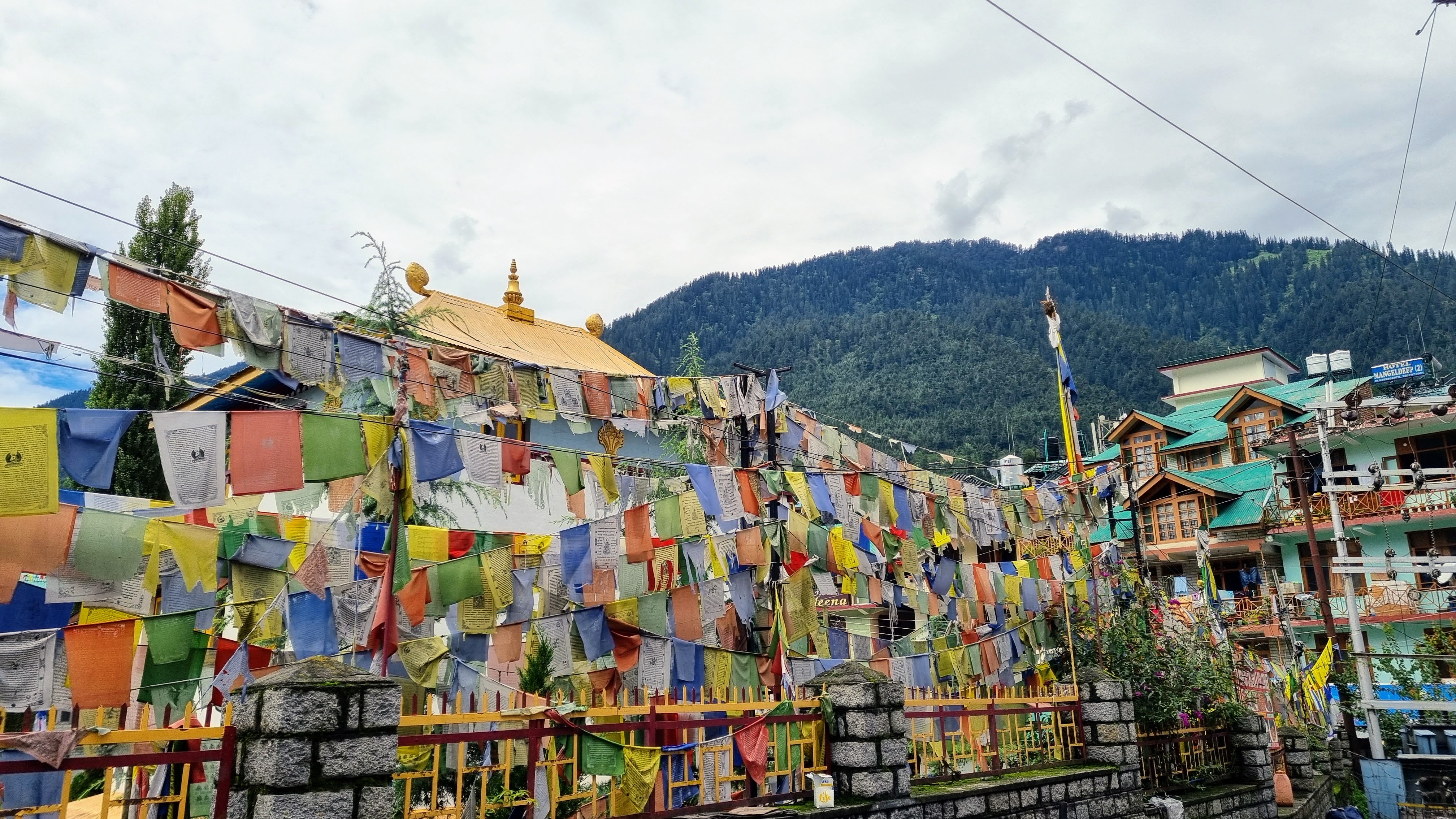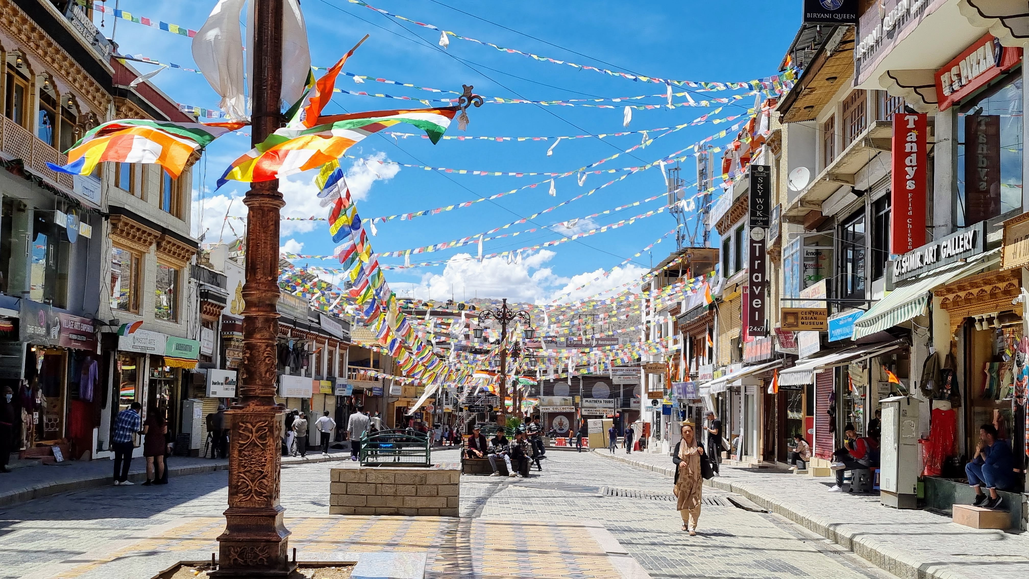 Dans toute la ville, tournent régulièrement des moulins à prières et en levant la tête, on peut voir de nombreux drapeaux à prières spécifiques au Bouddhisme tibétain que l’on trouve aussi au Tibet, au Népal, au Sikkim et au Bouthan. Ils sont considérés comme des porte-bonheurs possédant la capacité d’écarter les difficultés. Le vent disperse les prières inscrites sur les drapeaux pour transmettre un message de paix et d’harmonie.