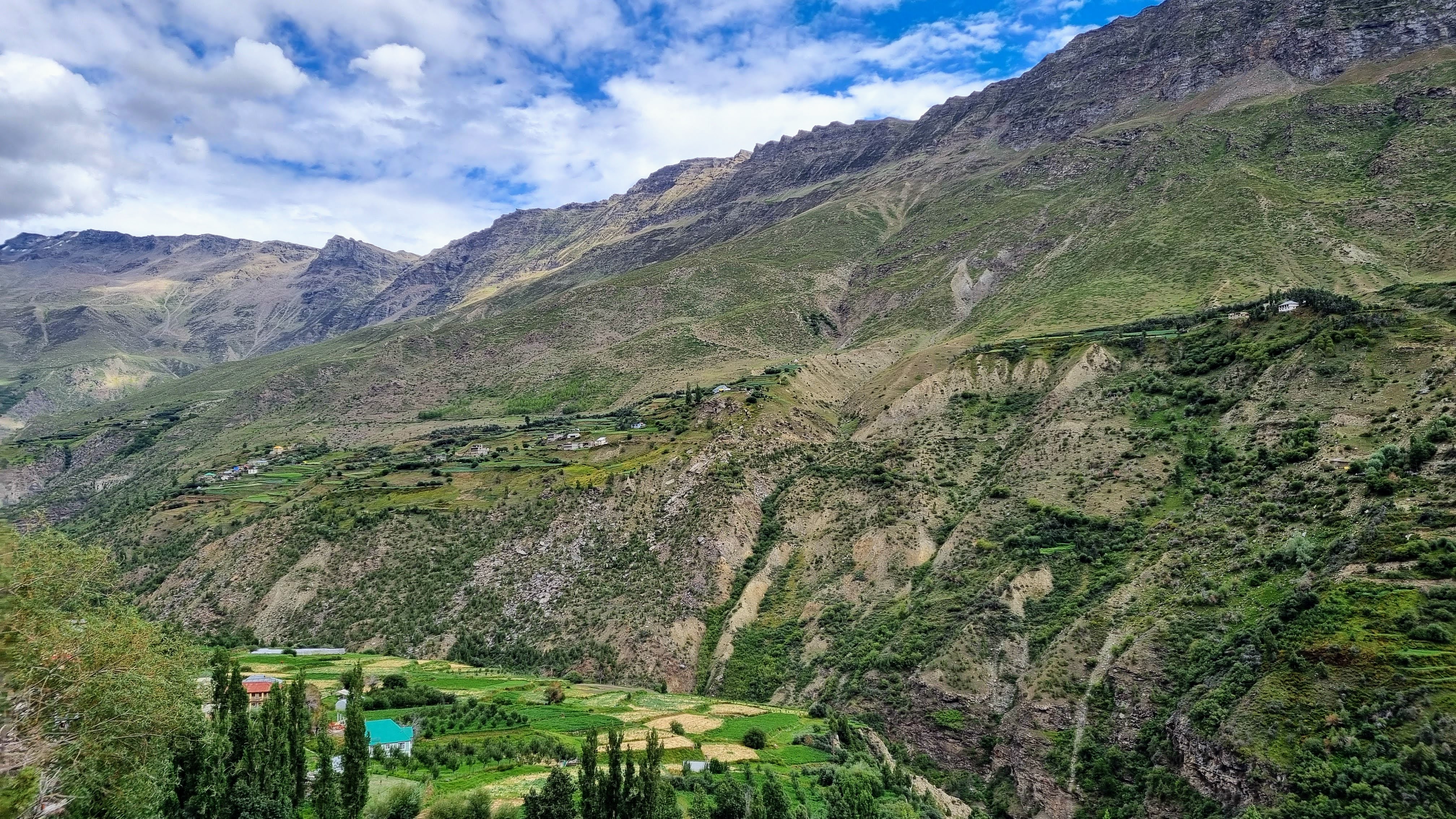 Les abords sont fertiles, verts avec des petites parcelles de blé, de légumes, de pommiers et d’abricotiers qui contrastent avec les montagnes sèches et arides de l’Himalaya.