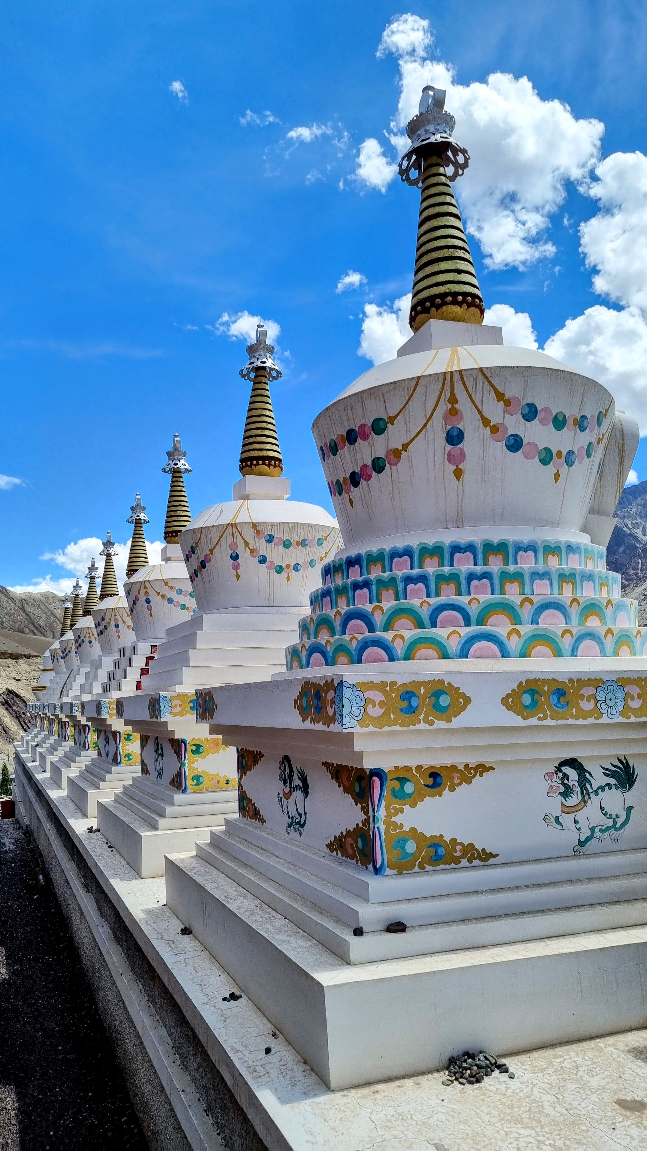 En hauteur, sur des éperons rocheux, des temples Boudhistes, des Gompas (monastères), des stupas (pagodes aussi appelées chortens au Ladakh, contenant des reliques du Buddha et des mantras) sont présents dans chaque village.