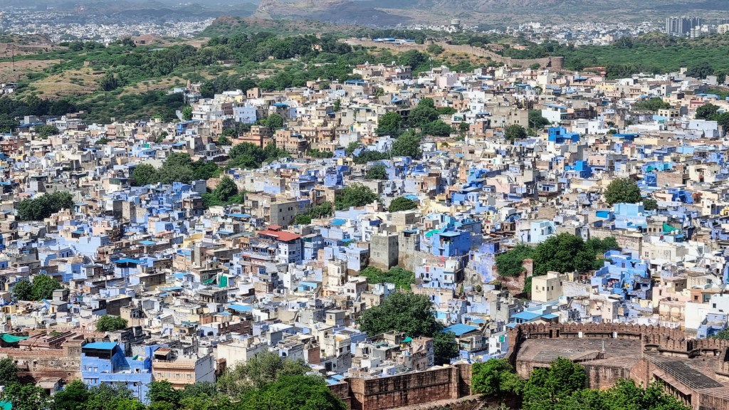 Appelée « la cité bleue « , les attraits principaux de la ville sont le fort Mehrangarth, les maisons aux façades bleues, la tour de l’horloge sur la place centrale et ses marchés tout autour.
