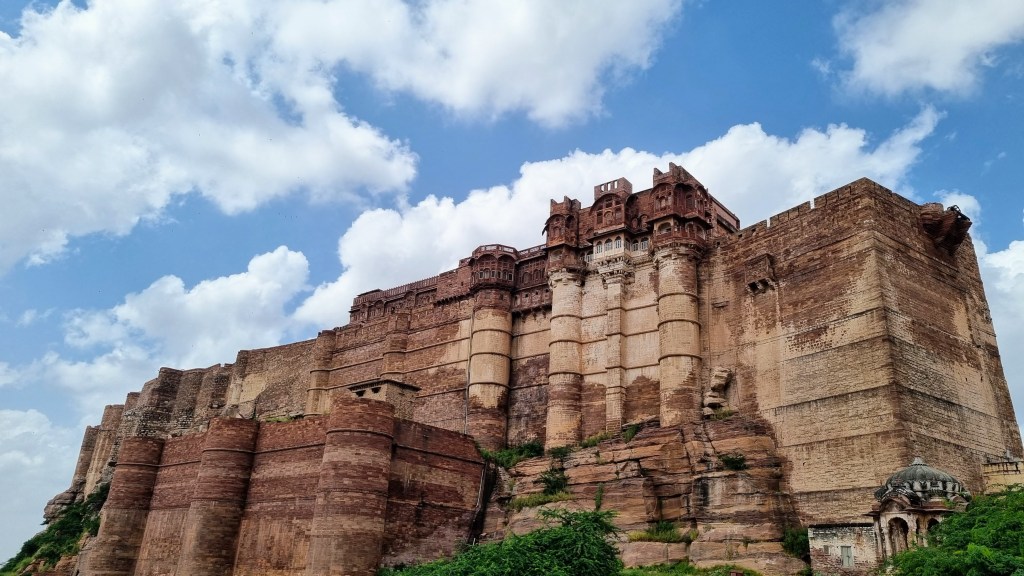 Le fort Mehrangarth construit au XVème siècle est l’un des plus imposant de l’Inde. Il se dresse à 125 mètres au dessus de la vieille ville et abrite le palais du maharadjah, plusieurs habitations et temples, un jardin.