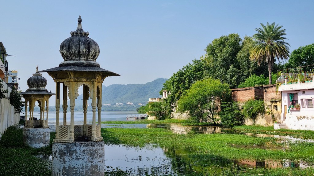 La ville est entourée d’une colline verte et boisée de la chaîne des Aravalli. L’activité de la vieille ville se concentre autour de trois lacs.