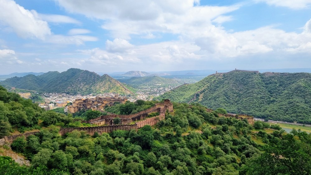 Sur les hauteurs de la ville à une dizaine de kilomètres, dans une nature verdoyante et vallonnée, se trouve le Fort Amber datant du XIème siècle pour sa partie la plus ancienne. Constitués d’un fort principal et du Fort Jaigarh, plus petit, le surplombant. Une grande muraille entoure les deux forts et le village de Amber sur plusieurs kilomètres en suivant les dénivelés des monts, rappelant sa célèbre cousine chinoise. Tout l’ensemble est constitué de grès rouge.