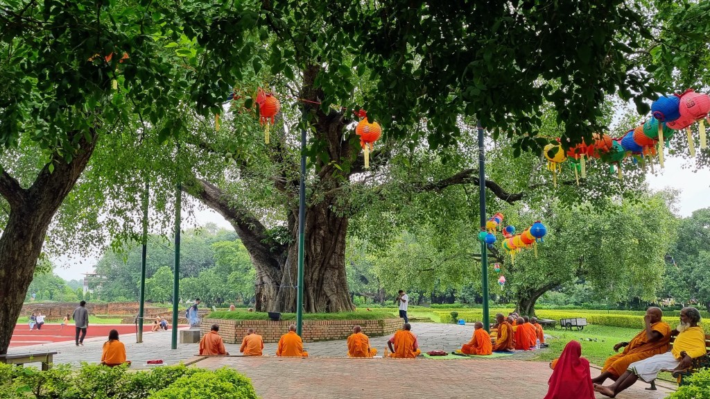 À côté, des moines bouddhistes viennent se recueillir sous l’arbre de la Bodhi symbolisant le lieu où Bouddha a atteint l’éveil.