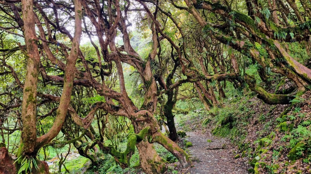 Machhapuchhre Il existe de nombreux treks d’une durée de 3 à 15 jours ou plus en croisant ou cumulant plusieurs parcours. On traverse des forêts denses de bambous, de conifères et de rhododendrons géants au milieu desquelles se jettent de nombreuses cascades.