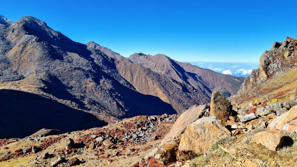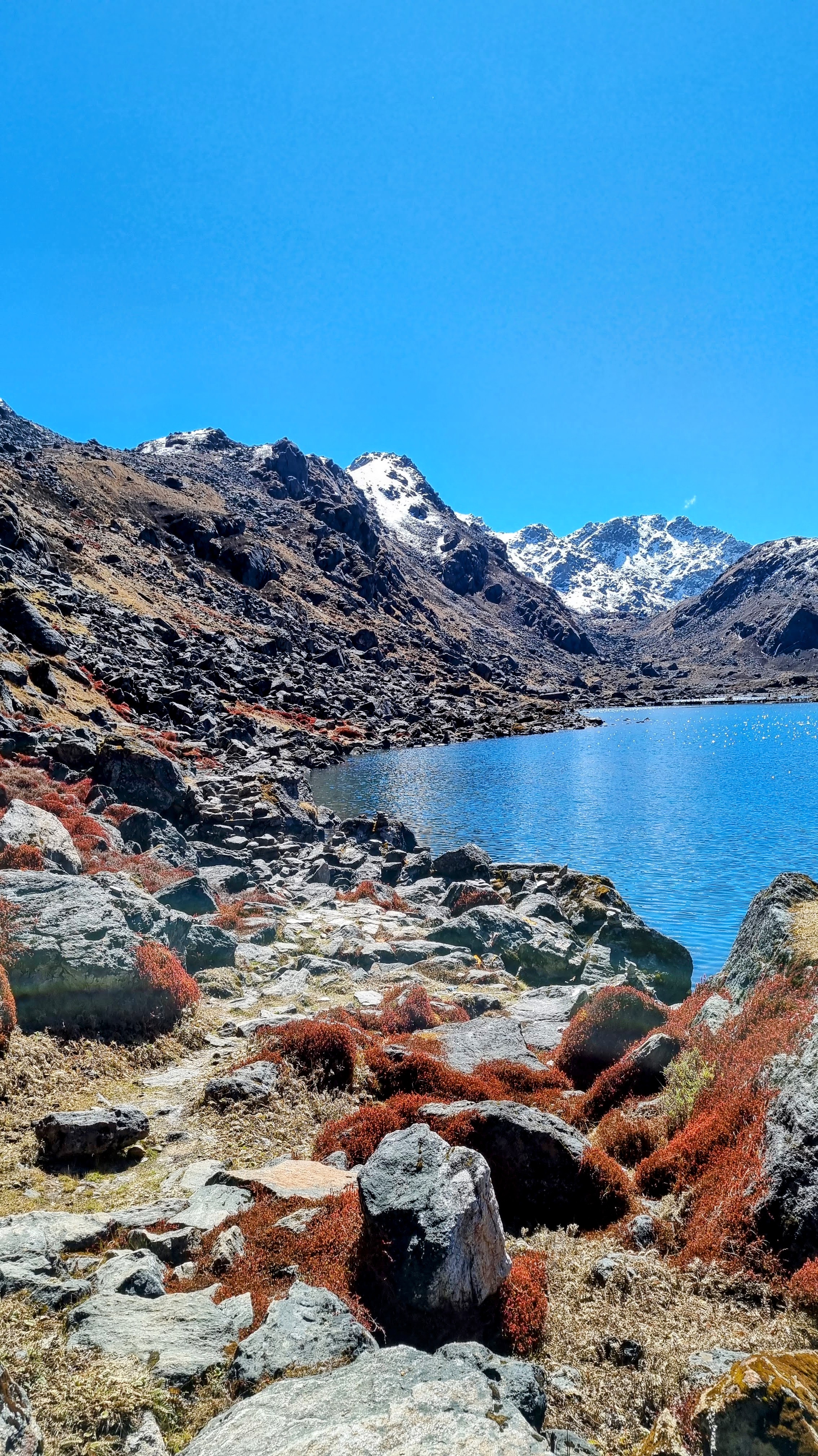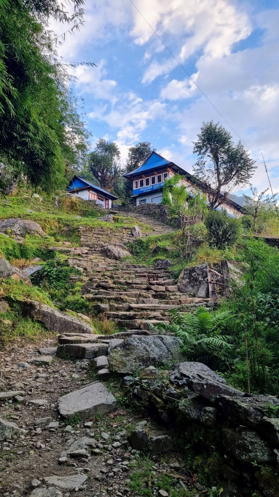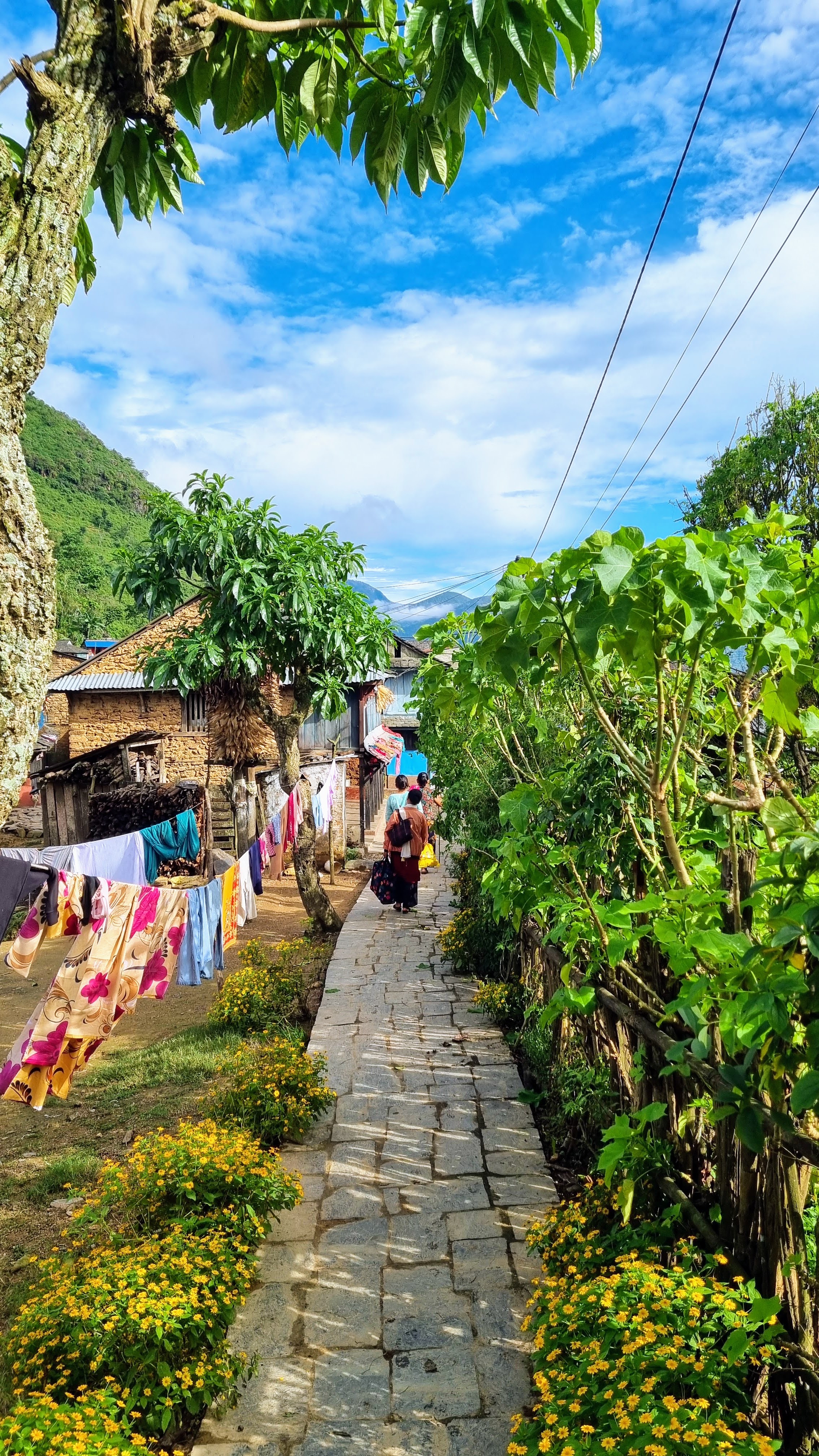 De nombreux sentiers ont été aménagé avec des marches en pierre par les habitants pour relier les villages. Si à 3500 mètres d’altitude, la nature est encore bien végétale, elle devient minérale au-delà, puis enneigée aux sommets.