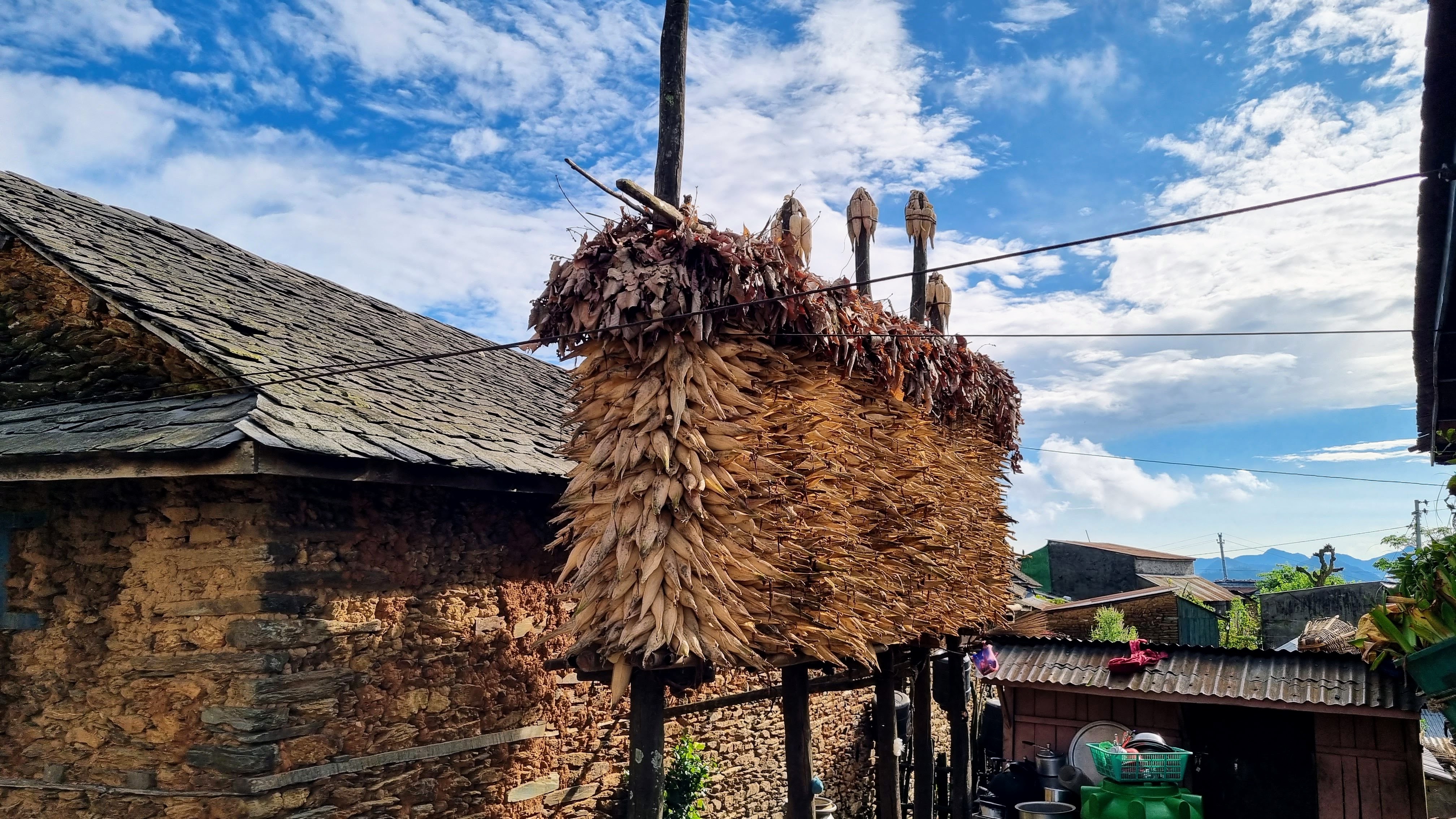Autour de presque chaque maison, on peut voir de petites parcelles de cultures et quelques animaux (poules,chèvres). Le maïs est mis à sécher en hauteur sur les balcons des habitations ou, étonnamment, entre deux poteaux. Il abrite l’une des dernières maisons rondes au toit de chaume de la région.