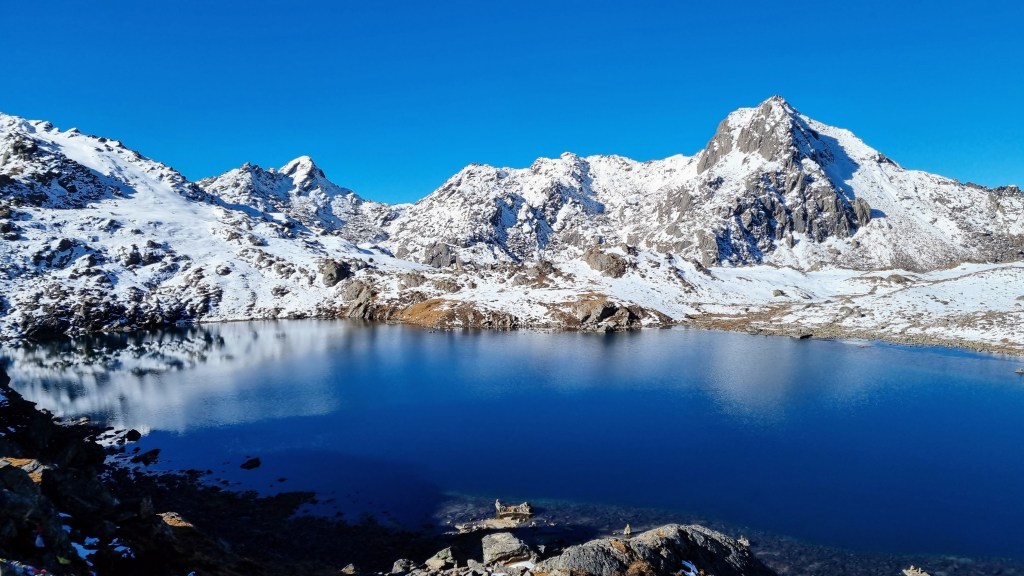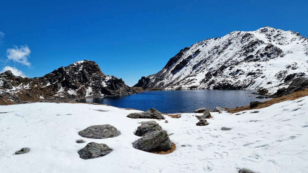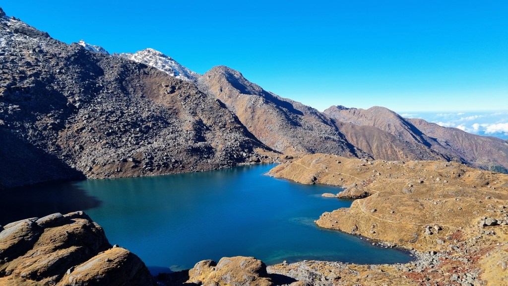 Le lac sacré, à 4380 mètres d’altitude, est entouré de montagnes et reste gelé pendant six mois de l’année. Il est situé dans un ensemble de plus de cent lacs d’altitude.