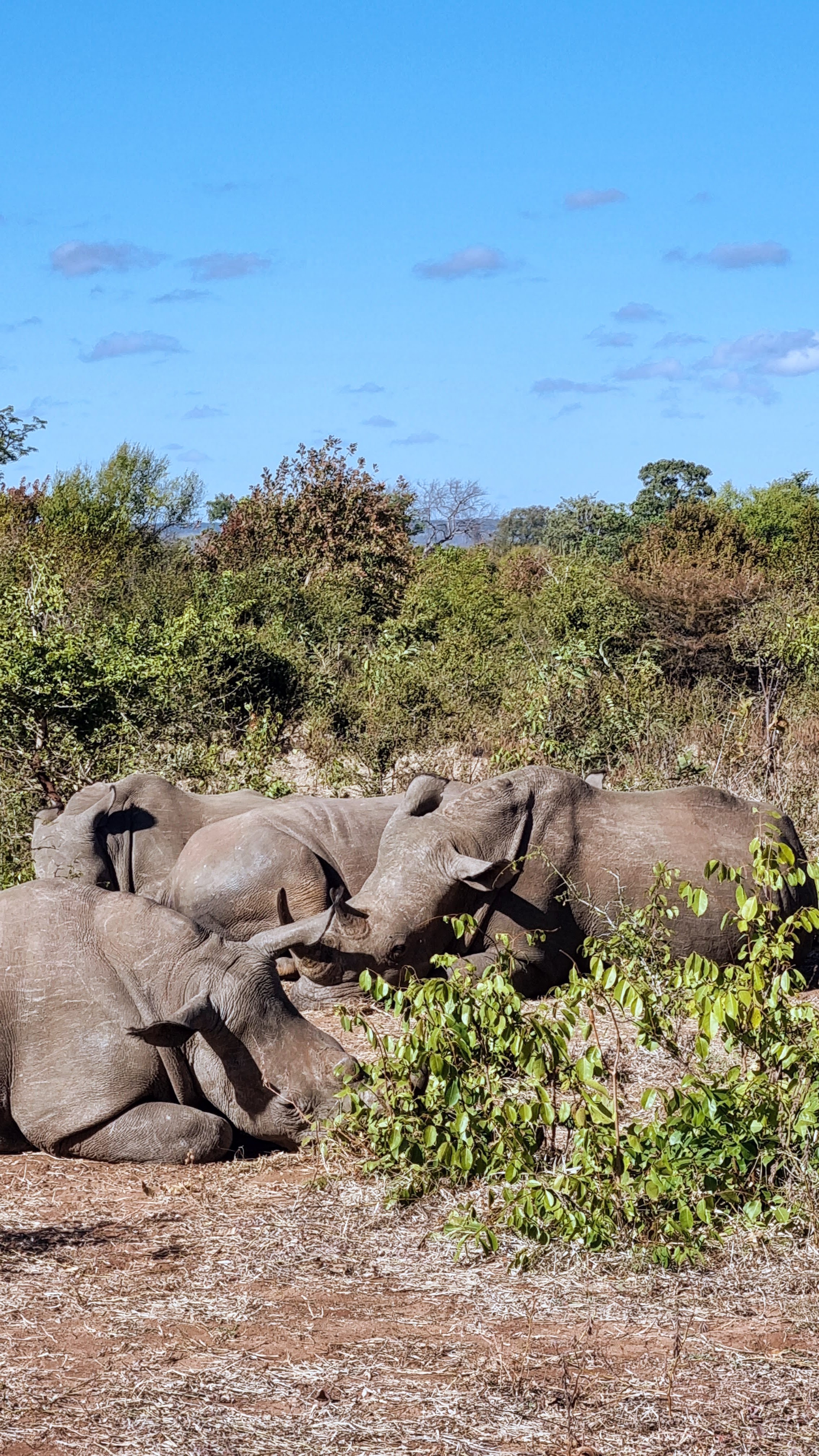Le parc naturel au sud de Livingstone est le seul du pays où l’on puisse observer des rhinocéros blancs. Il en reste une dizaine. On a pu en voir cinq au repos, mais aussi de nombreux groupes d’impalas, des girafes, de calaos à bec rouge et un gnou.