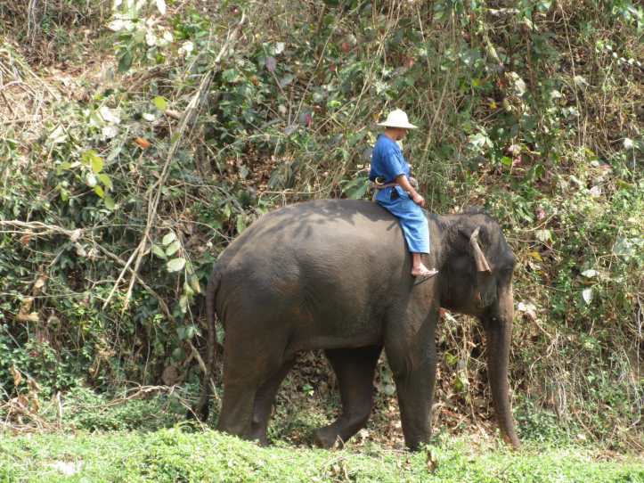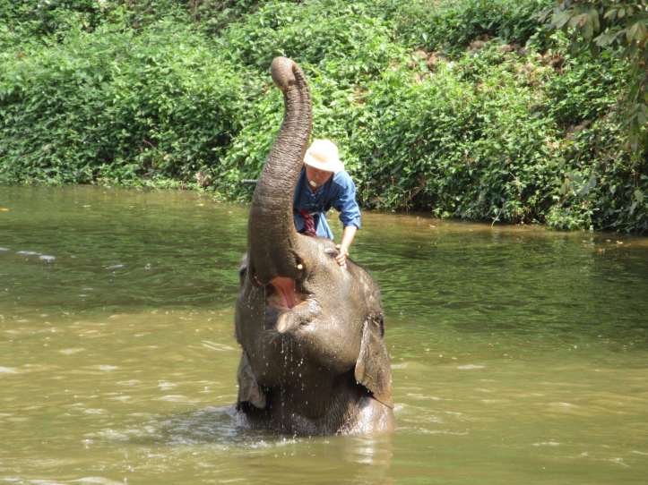 11h00, un bus rafistolé nous dépose sur le bord de la route au milieu de nulle part. Nous nous enfonçons dans la forêt. Les bambous, le chant des insectes, une chaleur pesante. Un peu plus loin se niche un centre de soin pour éléphants abîmés par la vie et le labeur. Nous les surprenons au moment privilégié du bain. Mahouts et pachydermes se rafraichissent dans une petite mare. Les éléphants disparaissent entièrement sous l’eau pour ressurgir à la surface quelques secondes plus tard, la trompe tendue vers le ciel. Puis ils aspergeront leurs maitres en les douchant avec leur appendice. C’est spectaculaire et réjouissant.