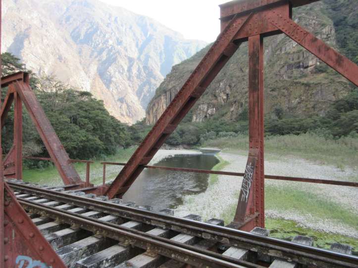 Manger une banane en regardant les trains passer lors d’une pause. Franchir un col à 4300 mètres d’altitude et redescendre à tombeau ouvert dans la vallée. Voir ce camion arriver en face de nous au détour d’un virage, entendre le cri du chauffeur, entendre le coeur battant des 15 passagers s’arrêter net… Le rire du chauffeur, un signe de croix…, entendre la vie reprendre sa route. Ne pas ralentir en roulant dans les torrents de montagnes débordant sur la route et sauter dans les flaques. Sentir la roue du bus frôler un vide abyssal sur des chemins de poussières. Se laisser subjuguer par la montagne qui fait oublier toute les peurs.