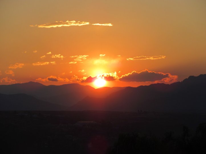 Quand l’ombre sur le cadran solaire tend à se dissiper, on monte enfin sur les hauteurs de la ville. S’offre à nous le spectacle classique mais toujours saisissant du soleil se dérobant derrière le relief andin. Les artères toutes martiales, les toits de tuile, les clochers et les palais de la cité rosissent, rougissent et tombent en pamoison devant ce spectacle pourtant mille fois rejoué.