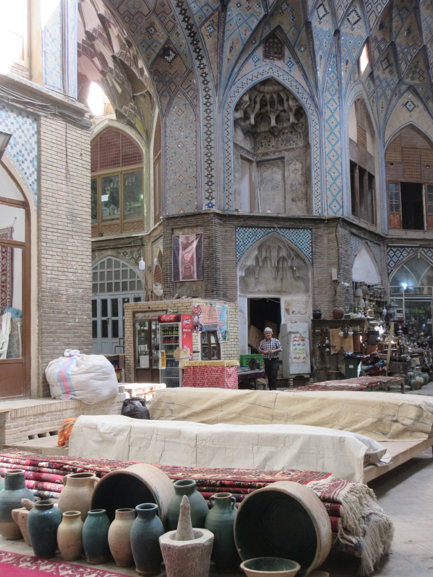 Le soir, dans les alcôves, on discutait de la valeur des cargaisons, on troquait les biens et aussi les histoires. On s’échangeait les nouvelles de l’Est contre celles de l’Ouest, on parlait toutes les langues et sous les hauts dômes du Bazar s’élevait et s’exprimait tout le génie nomade d’Eurasie. Marco Polo qui en fût le témoin et le narrateur n’avait rien inventé. Cette fameuse route des échanges existait depuis des siècles. Elle véhiculait déjà depuis plus de mille ans les idées, les philosophies en construction en même temps que les biens. Elle sinuait d’Empire en Royaume sans sourciller et se moquait des frontières. Elle contournait les guerres et survivait à tous les pillages. Les routes de la soie étaient multiples et ne connaîtront aucune défection jusqu’à l’avènement des routes maritimes du 16 ème siècle. En touchant la terre chaude de ces murs brûlés par le soleil, nous avons bien peu de mal à revoir ces aventures épiques. Et sous les arches colorées du Bazar, il suffit de fermer les yeux de temps à autre pour entendre les cris des marchands et le bruit des sabots. 2000 ans d’Histoire d’un sillon nomade défilent devant nos yeux. Ce soir en grimpant sur les toits de l’oasis de Kashan, c’est toute l’humanité qui tient ici conciliabule, qu’il nous est donné de contempler.