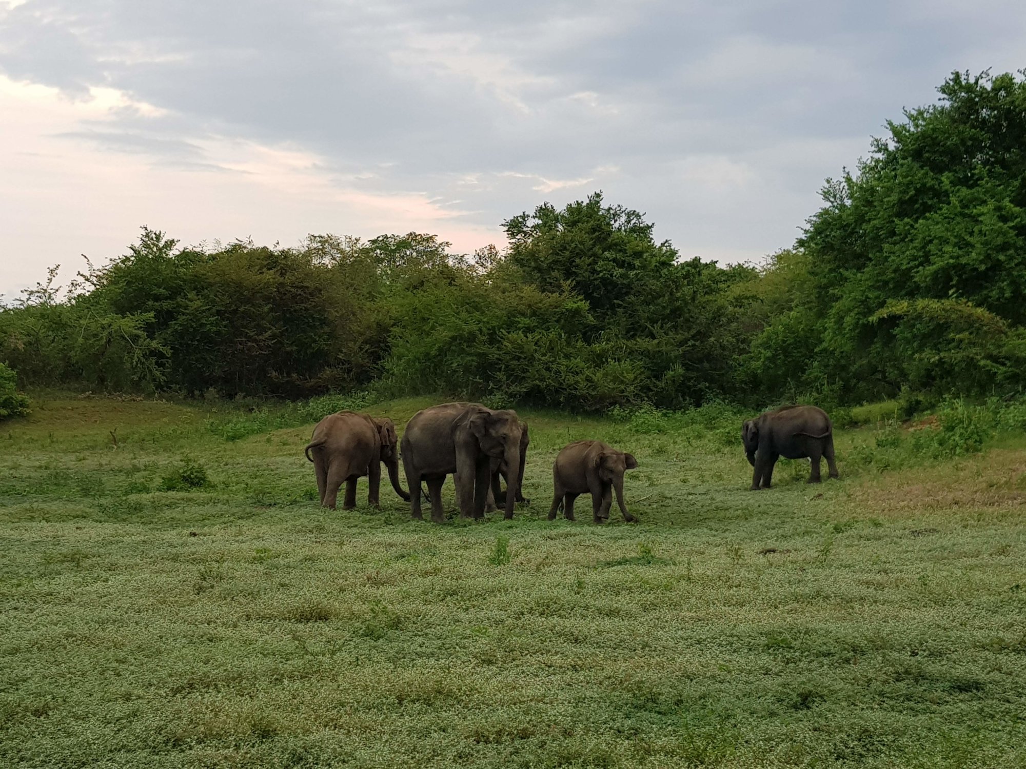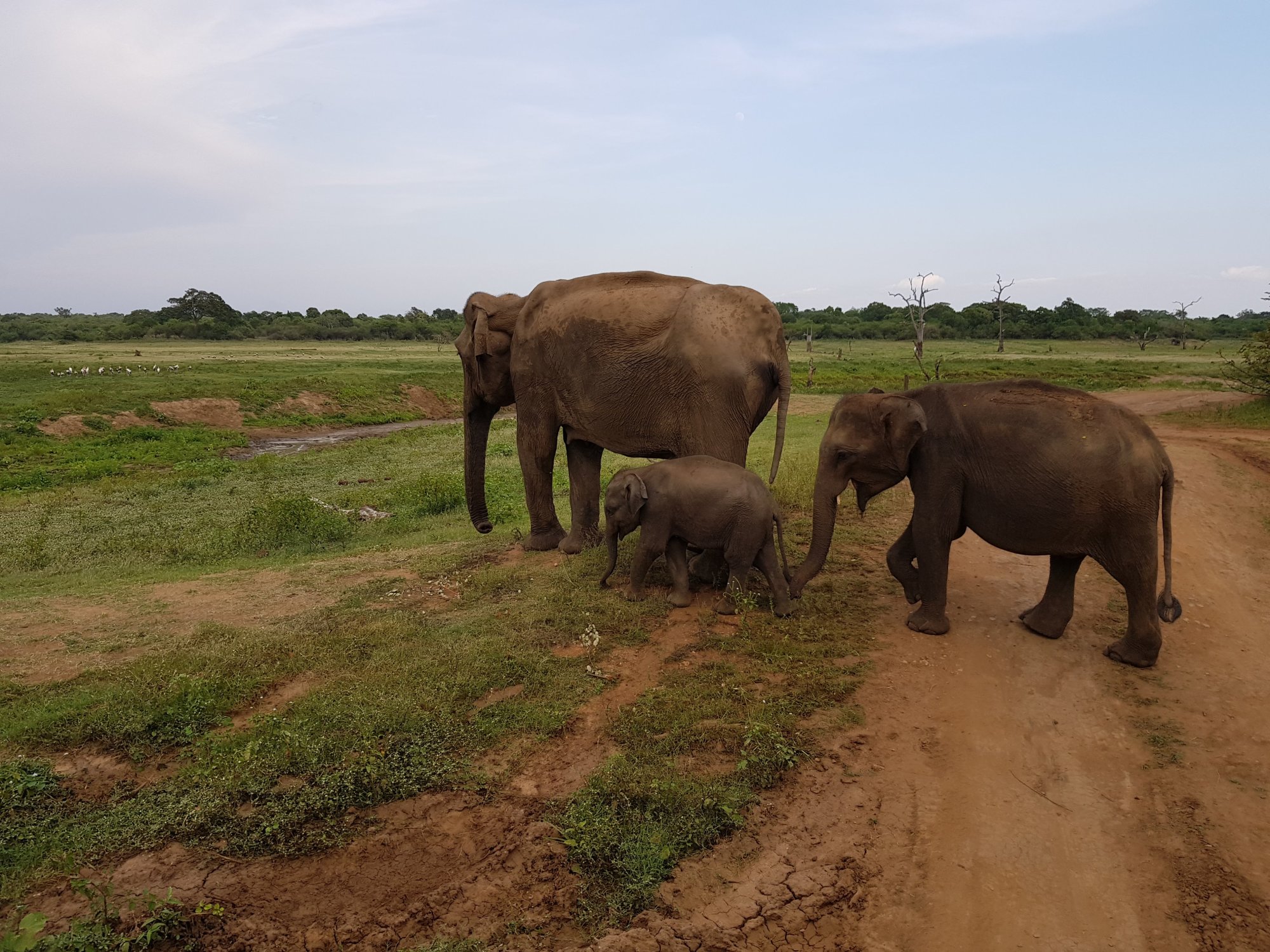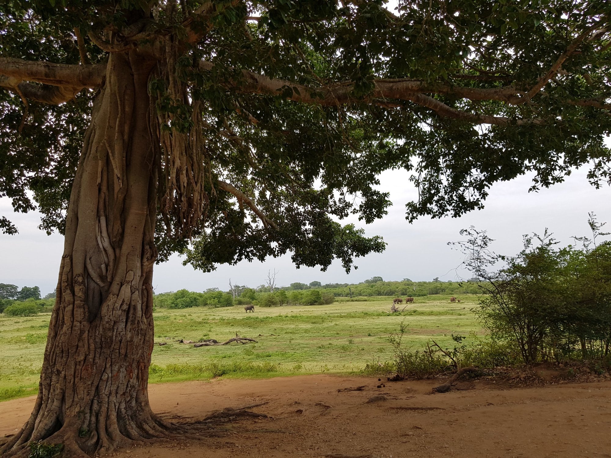 Et puis, massifs, nonchalants, les éléphants. Les éléphants sans chaînes, sans cornacs, sans touristes blancs sur le dos, sans grilles. Ceux des plaines et des broussailles, ceux des savanes et des buissons. Les éléphanteaux qui courent après leur mère, les éléphants qui se gavent d’herbes rases avec leurs trompes, les troupeaux d’éléphants, les vieux solitaires….les éléphants qui en imposent et nous laissent silencieux, en apnée par oubli de reprendre notre respiration… Un échassier dans l’eau, plumes colorées, long bec effilé noir, s’est mis en tête de s’attaquer à la rude carapace d’une tortue. Plus haut, un caméléon coquet s’évertue à accorder le gris de son costume à celui de la branche sur laquelle il contemple, impassible, son monde. Un monde parfait. Quant à nous, pauvres étrangers perdus dans la jungle, les pieds un peu hors sol, sans racines pour nous maintenir, sans dieux pour nous rassurer, il ne nous reste plus qu’à s’avouer vaincus. En pensant que jamais un building, si haut et majestueux soit-il, ne pourra égaler ce sentiment de puissance absolue et cette élégance inouïe qu’offre ce soir à nos sens, le spectacle de la nature.