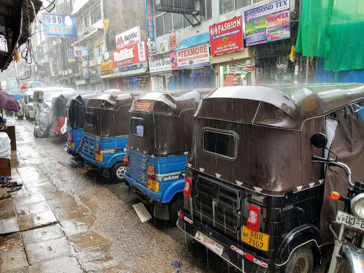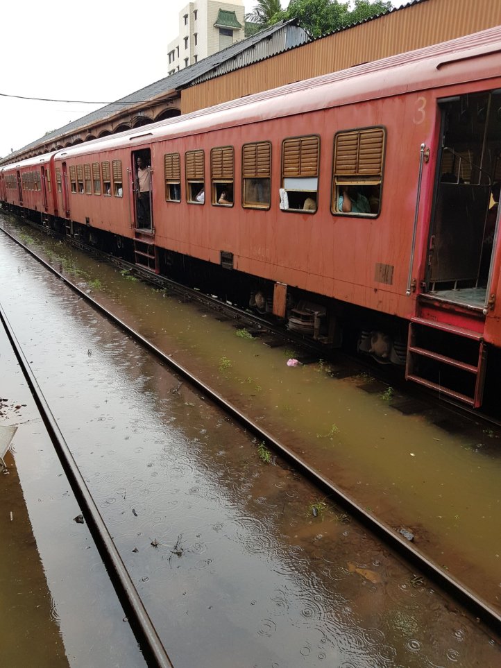 Plus récemment, l’arrivée à Colombo sous une pluie battante, les roues du train dans les eaux à une heure de pointe, fût épique et contribuera à graver sans doute, un peu plus profondément dans nos mémoires, cet épisode qui ne devait être qu’une formalité. La gare devenait un terrain d’observation extraordinaire et en sortir se transformait à coup sûr en aventure. La mousson s’invitait sous nos ponchos et nos sandales cherchaient à tatons, à éviter les pièges d’une mauvaise chaussée devenue à certains endroits bassin aquatique.