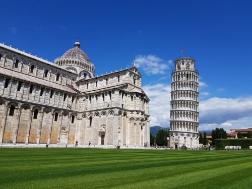 Campanile le plus célèbre du monde, avec 58 mètres de haut taillés dans le marbre, cette tour est un chef-d’oeuvre de l’art roman de Toscane.