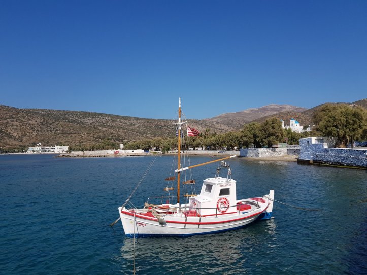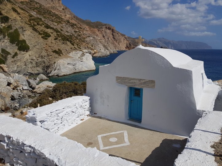 Lorsque vous descendrez du bateau en arrivant sur Amorgos, vous longerez le quai du port de Katapola. L’air tiède mais rafraîchissant du large vous tiendra compagnie jusqu’à ce que vous vous engagiez dans le sentier qui se trouve à votre droite après l’église au dôme bleu.