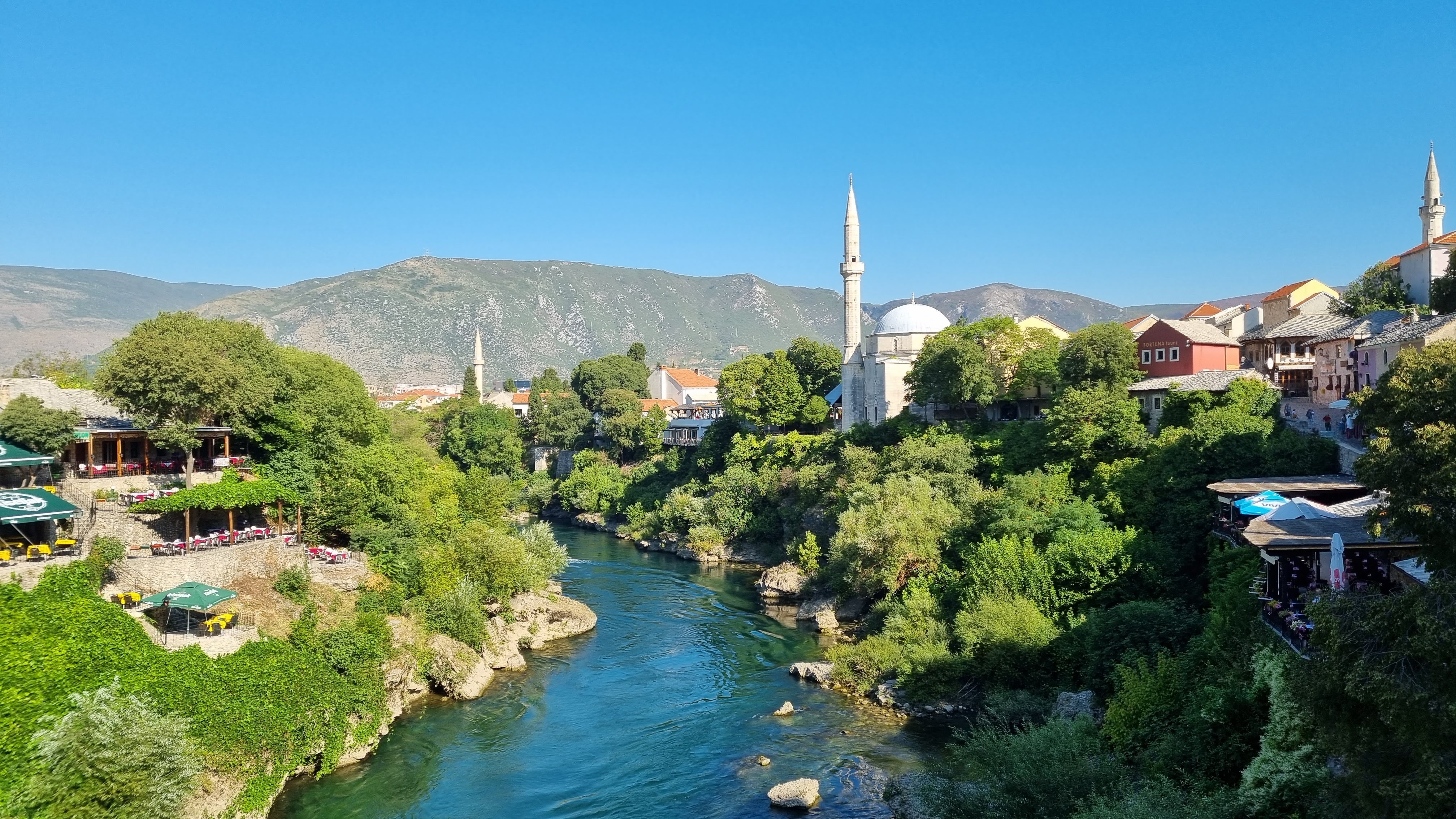 C’est une vallée entourée de petites montagnes apres, rudes et polies par le temps. Une rivière au yeux de jade, aux eaux froides, du nom de Neretva trace en son sein un sillon d’opale. Sur les flancs des collines, des maisons aux toits de tuiles ou de lauzes sont ramassées autour de minarets de pierre pâles élancés vers un ciel azuréen sans défaut.