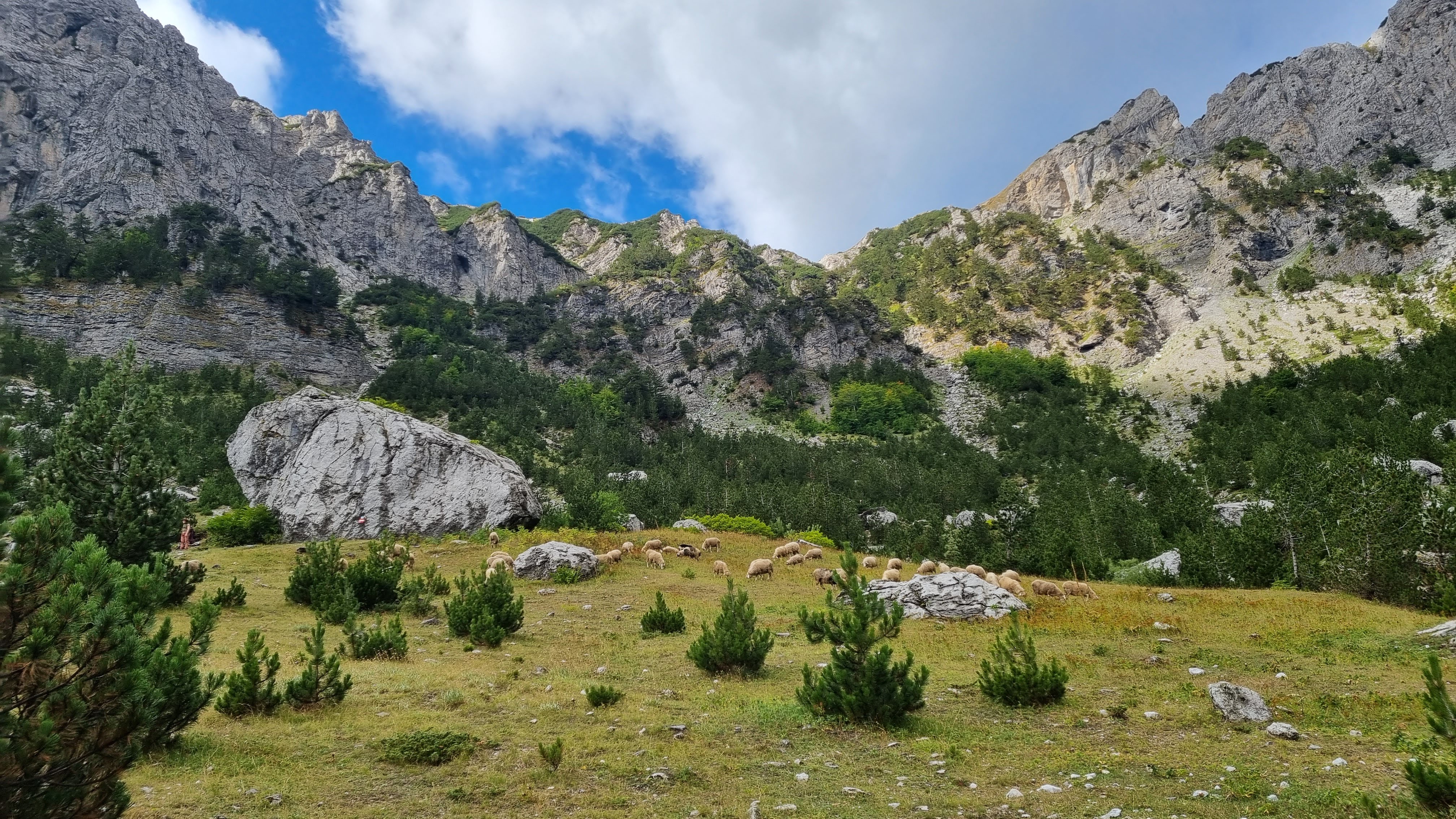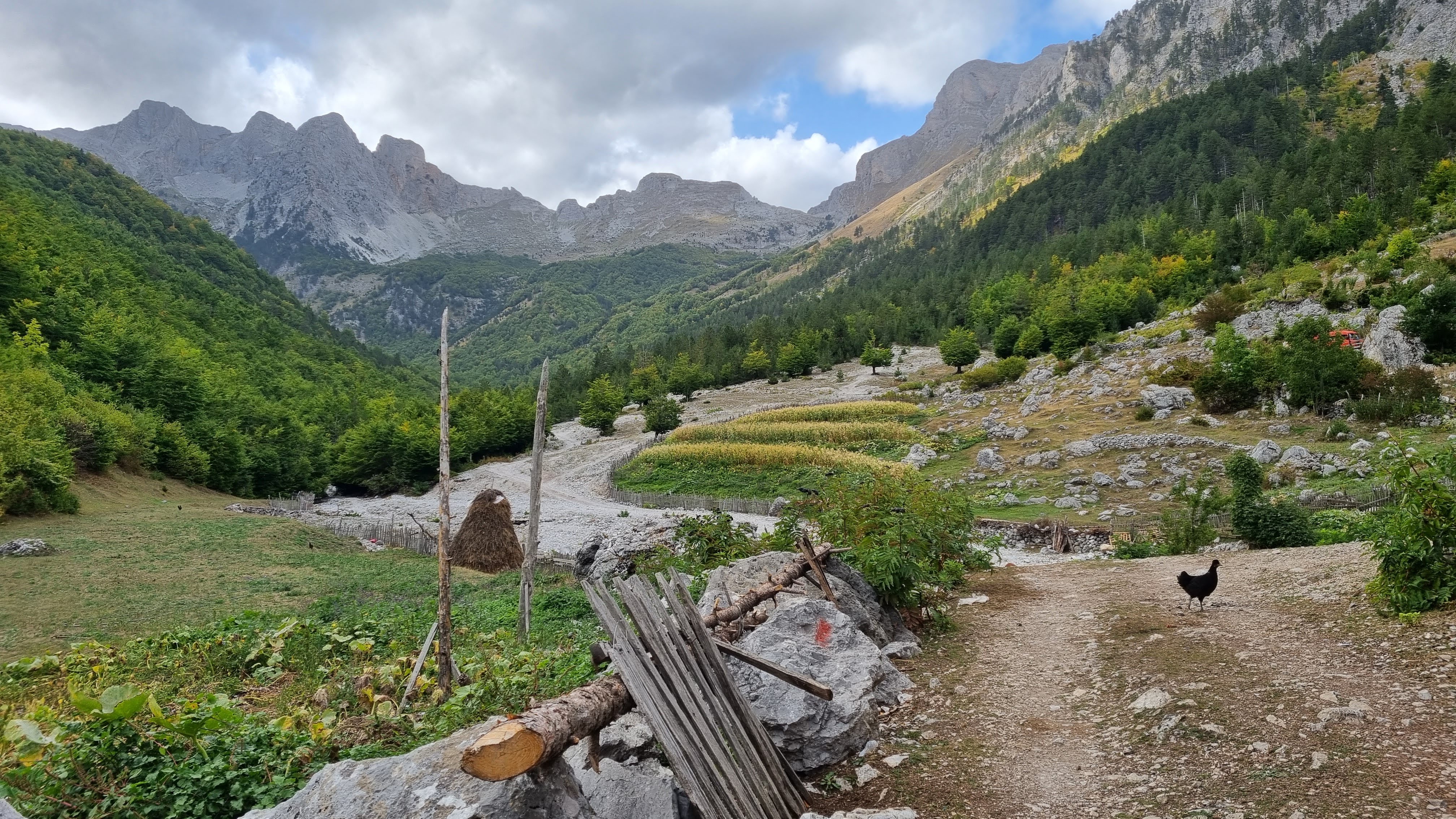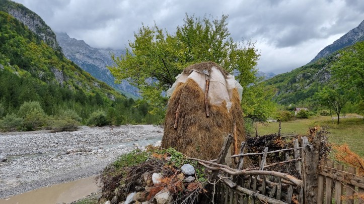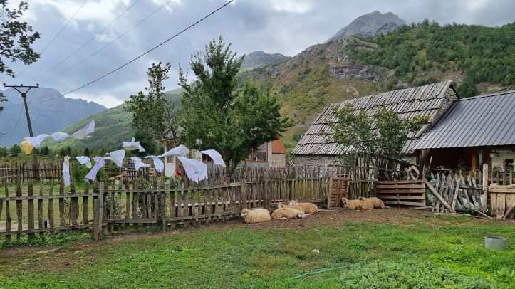 Une ultime heure de piste nous dépose enfin à Valbonë, village de fond de vallée, étiré en longueur, peuplé de fermes familiales où chacun possède une vache ou deux, quelques arpents de terre et désormais quelques chambres pour héberger les marcheurs d’Albanie ou d’ailleurs. Car si notre logeuse, assise sur un trépied, trait ses vaches sous notre fenêtre, et que ses voisins ont passé l’après-midi à monter le maïs en meule à la main, l’Albanie s’ouvre désormais au monde et c’est certainement toute une ruralité qui verra probablement son mode de vie bouleversé au fil du temps. En attendant, c’est toujours le soleil qui rythme les journées dans cette vallée qui n’a pas encore cédé aux caprices du progrès ni aux exigences parfois saugrenues des touristes.