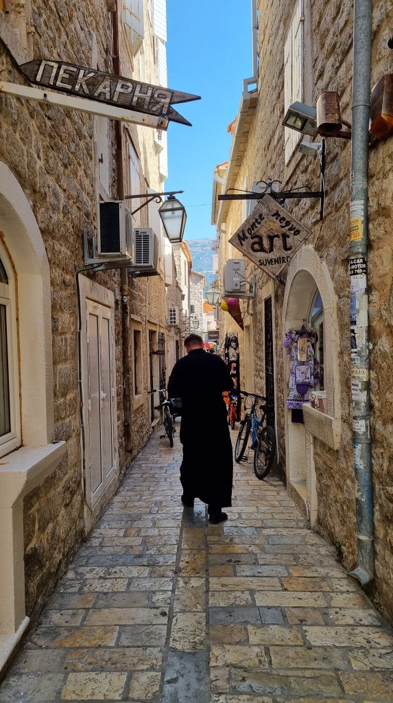 On quitte l’Albanie lorsque le soleil donne au zénith, avec savoir faire, en Mercedes-Benz, véhicule emblématique du pays.Un homme dans la rue a proposé de nous faire passer la frontière rapidement. Accord sur le prix, pour le reste, faire confiance à la chance. Lacets de montagne, un dernier regard sur les Alpes dinariques albanaises, notre chauffeur nous dépose devant le poste frontière où un de ses amis doit nous récupérer à son tour pour le passage. On donne la moitié de la somme prévue au premier conducteur, l’autre billet sera pour le suivant. Faire confiance à la chance. Transfert de sacs, de voyageurs, passeports, tampons, nous rentrons au Monténégro à l’albanaise, dans une seconde Mercedes-Benz rutilante.