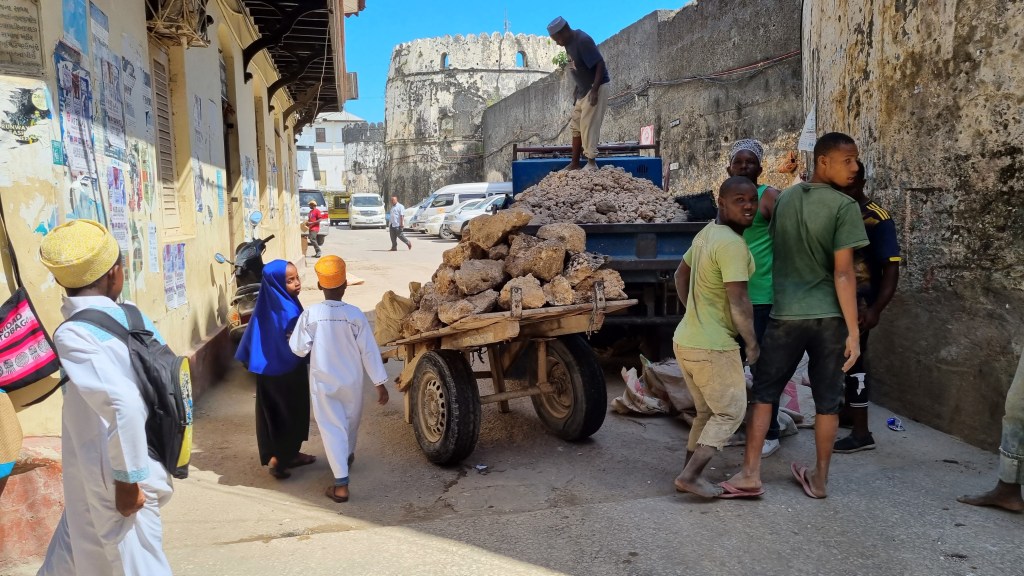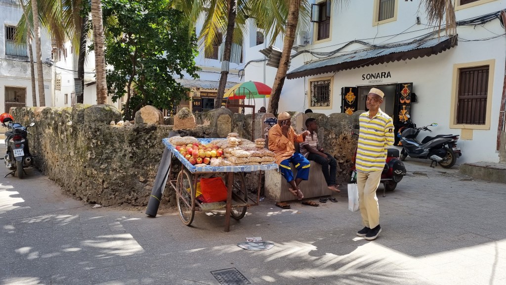 Zanzibar c’est Stone town, sa capitale labyrinthique, un dédale de ruelles étroites qui ne mènent jamais vers la sortie, des hommes poussant des plateaux massifs bardés de nourritures et de matériaux, une femme s’affairant autour d’un minuscule brasero de rue, l’odeur des sardines nouant relation avec celle des agrumes épluchées par le marchand ambulant, des jeunes filles aux voiles colorées sortant des écoles, s’éparpillant à droite à gauche, souriantes et studieuses, le bavardage des hommes en tuniques blanches à l’entrée d’un commerce de vêtement, couvert par les cris stridents de gamins avertissant les passants de l’absence de freins sur des vélos devenus fous.