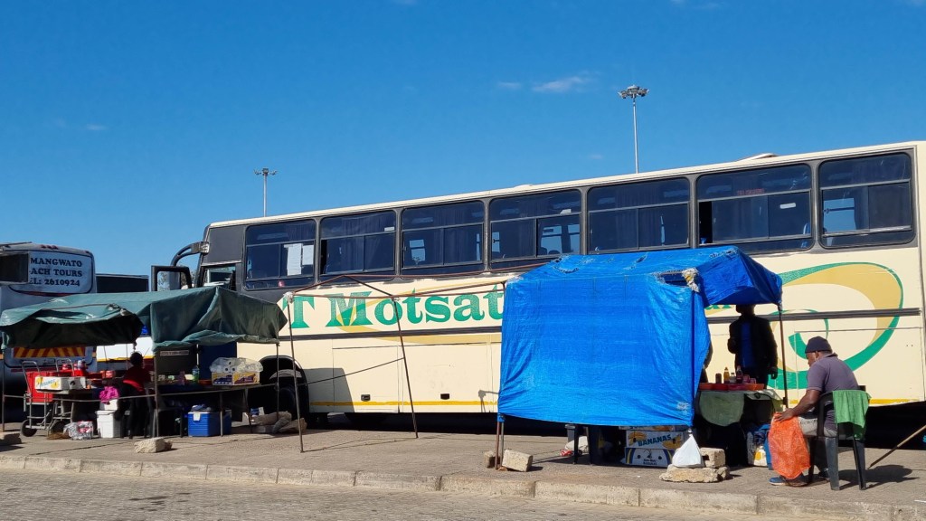 Nous étions arrivés la veille par le bus de nuit de Kasane, le jour n’était pas encore levé. Dans ces situations, la fatigue d’un voyage mouvementé sans sommeil, le manque de réflexe au débarquement sur un trottoir inconnu, l’assaut d’une multitude de gens prêts à vous emmener n’importe où, le tout empaqueté dans une nuit apparemment sans issue, imposent généralement une relative prudence. Nous posions les sacs à la station essence du coin. Frigorifiés par les six degrés annoncés, on y trouvait un friand chaud à manger et un peu de lumière. A l’aube, on prenait la route pour traverser la ville et rejoindre notre nouvelle adresse. Marcher apportait bien souvent la solution à nos interrogations du moment. On évitait ainsi de ruminer en boucle des élucubrations du type » Mais qu’est-ce qu’on fait là…? Il ne fallait pas prendre ce bus, si c’est pour arriver la nuit… » Et on cessait, en outre, de trembler de froid dans le matin pâle d’une nuit agitée. Le jour gagnait en intensité, nous retrouvions des couleurs.