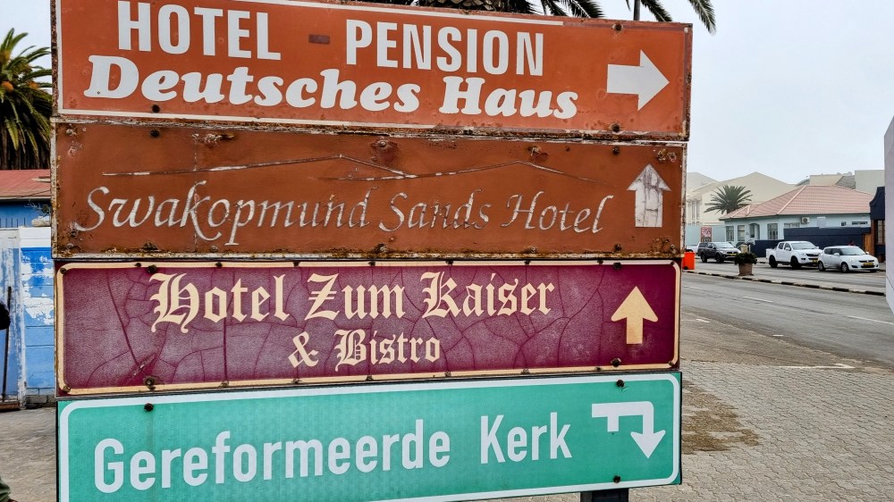 Swakopmund, aux traces d’histoires germaniques et au nom imprononçable, est avant tout une attachante cité balnéaire. Lorsque nous nous inquiétons de la météo maussade et du brouillard qui pèse sur la ville, notre hôtesse explique que Swakopmund connaît quatre saisons en un jour. Les bretons que nous sommes devront reconnaitre que cette maxime, mille fois entendu de Rennes à Quimper, n’est en tout état de cause, pas l’apanage exclusif de la terre armoricaine. Bretagne est univers, certes, mais elle n’est pas seule.