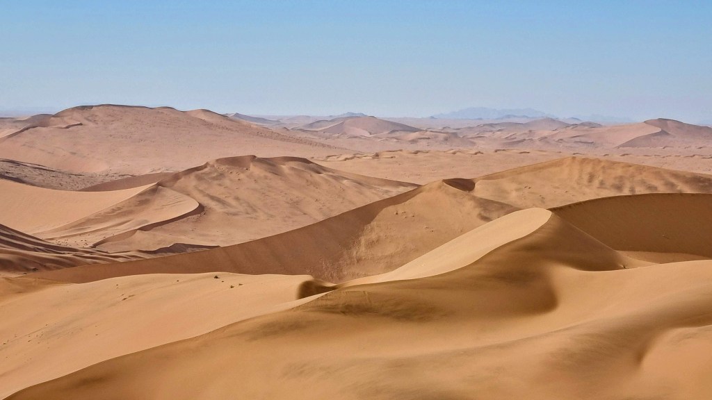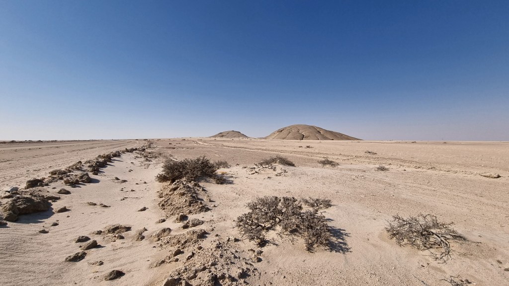 La monotonie supposée du désert ne s’avère pas correspondre à la réalité de cette région du monde. Sur près de 400 kilomètres, le paysage transite effectivement par des zones blanches, désespérément planes, parsemées de rares buissons épineux. Mais cet infini aride est relayé plus tard par des étendues d’herbes rases. Elles sont jaunies de la même façon que celles que l’on croise en savane puis amorcent un changement de teinte, tirant ainsi sur un pâle anisé.