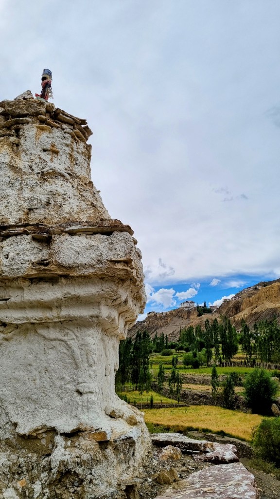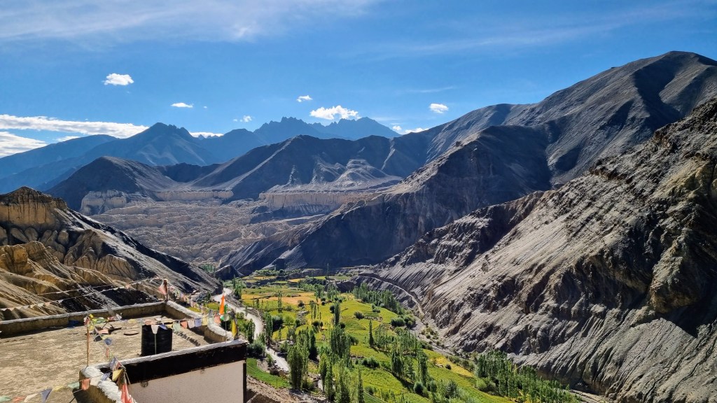 Deux jeunes sœurs nous avaient proposé dans le village, hébergement et couverts. Et nous nous étions ainsi retrouvés, une demi-heure après être descendus de notre bus, les jambes en tailleur, devant une table basse, à diner d’une assiette composée de riz, d’épinards et d’une soupe de lentilles. Un thé au lait sonnait la fin de la journée à Lamayuru.
