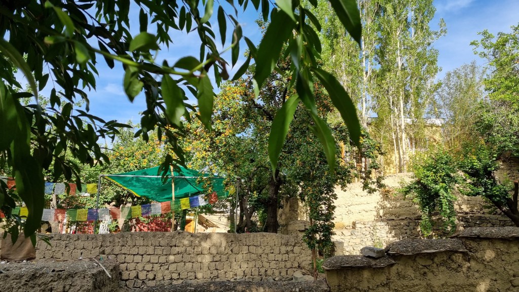 Lorsqu’en fin de journée, la fatigue se fait sentir, qu’au retour d’une route de dénivelés, les pieds peinent dans la descente et que le soleil s’est trop acharné sur les têtes, on connaît parfois cet abattement qui nous renverrait bien illico dans nos pénates, en fond de vallée. Alors on s’accroche à la vue envoûtante des sommets encore éclairés, on se souvient du goût sucré des abricots du coin, on se répète le « Julley » strident et enthousiaste d’une paysanne lancé à notre passage, le salut ladakhi.