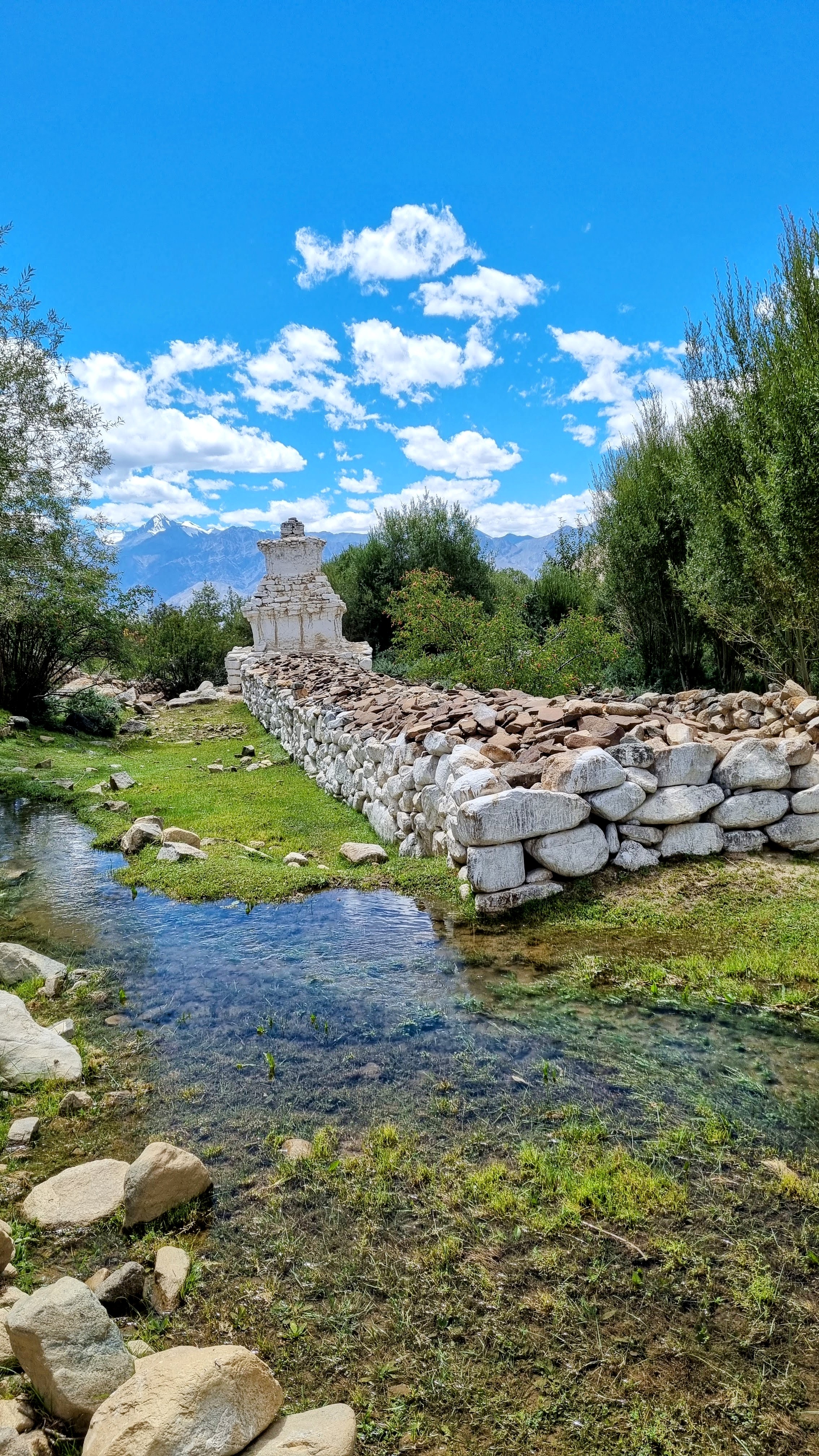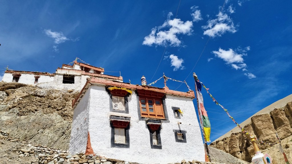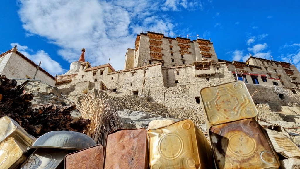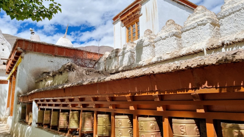 Avant de quitter le village de Saspol, nous irons explorer une dernière fois les montagnes environnantes. Nous visitons le monastère d’Alchi, dix siècles de briques de terres séchées, de peintures sacrées, de lectures étourdissantes et de méditations nichées sur les rives de l’Indus. On tourne autour du monastère en même temps que l’on fait tourner les moulins à prières, dans le silence des montagnes.