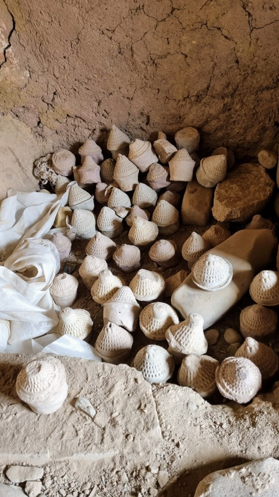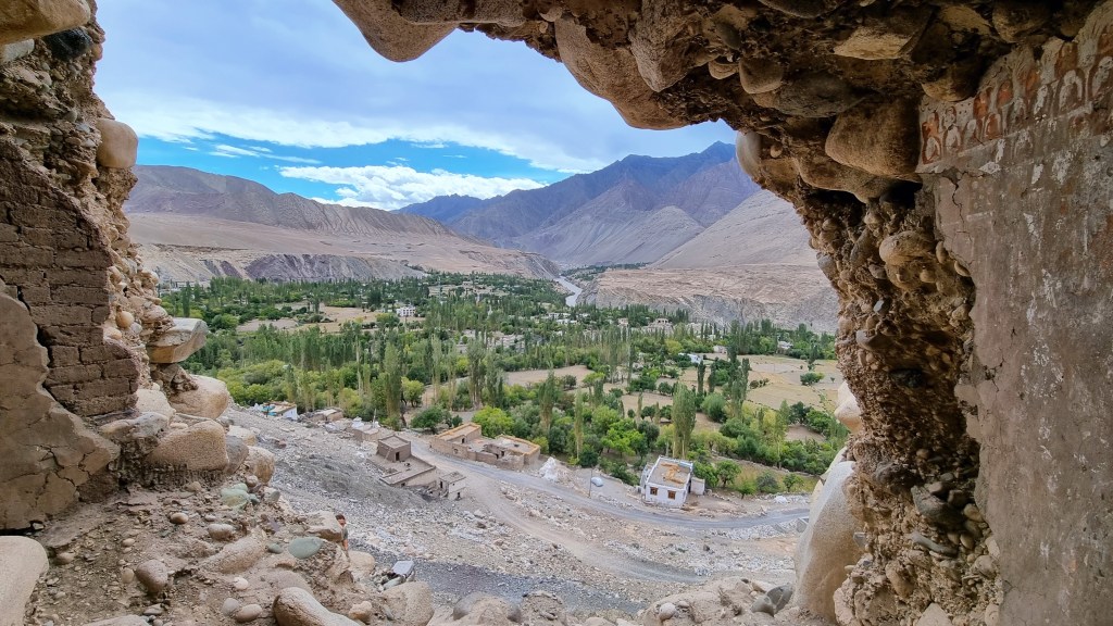 Et puis nous grimpons au milieu des éboulis, au-dessus de Saspol, jusqu’au grottes de Gon-Nila-Phuk. Ce sont d’anciens ermitages creusés dans une roche conglomérale meuble, composés de cavités minuscules qui, vues du pied de la falaise, semblent quelques trous de souris apparus naturellement au gré des éboulements et des infiltrations d’eau.