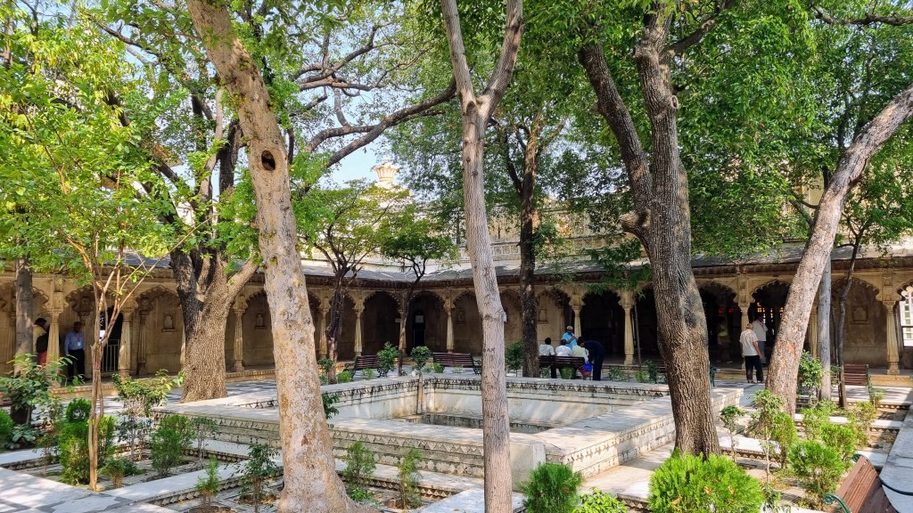 Il faut ensuite se perdre dans les couloirs et passerelles pour déboucher sur des cours et places ombragées, coiffées par quelques arbres, offrant quiétude et discrétion aux courtisans. C’est beau et calme comme rarement en Inde. On resterait volontiers des heures à s’asseoir sur un banc à lire quelques poèmes s’étirant en longueur ou bien un roman si exaltant qu’on souhaiterait qu’il ne finisse jamais. Seulement pour profiter de la sérénité du lieu.