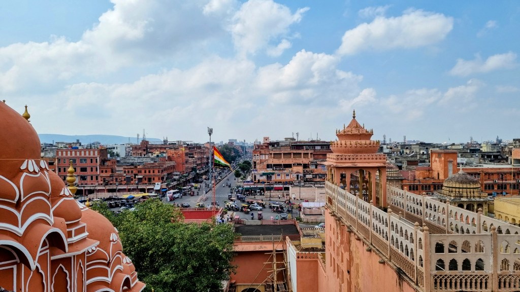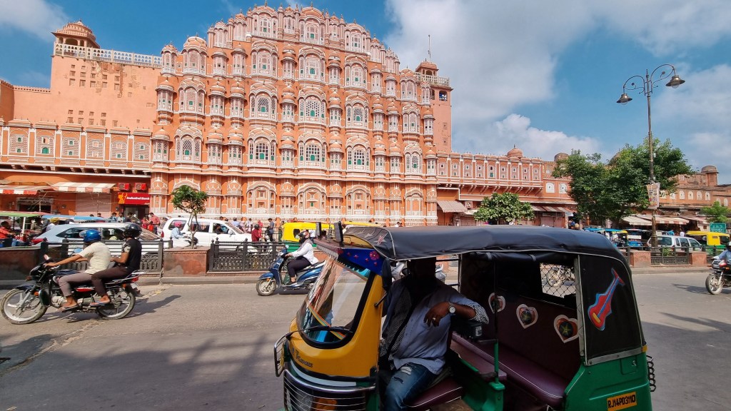 La gare de Jaipur, grande au front large, déverse ses centaines de passagers à la chaine. On chausse les sacs, quittant rapidement un lieu qui ne manque pas d’attirer son lot d’enquiquineurs dont le métier est de pêcher le touriste à la ligne afin de lui vendre du service tout azimut au prix de gros. La maille n’est pas assez fine, on file après seulement quelques escarmouches plutôt inoffensives. Le temps est à l’orage, une chaleur moite nous tombe sur les épaules. Pour contrer l’attaque de température, on file à Hawa Mahal.