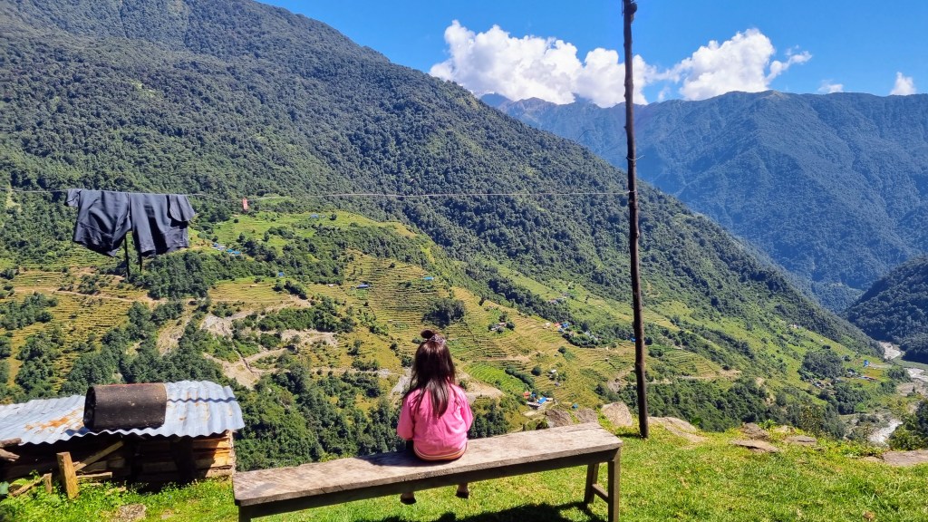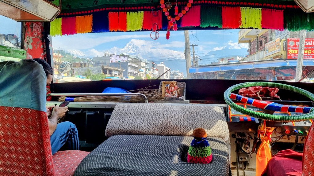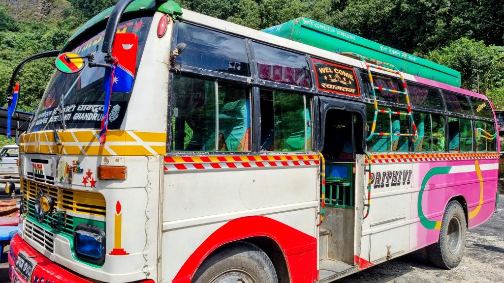 Nous avions opté pour un itinéraire qui ne nécessitait pas, en principe, de longues distances en bus pour l’atteindre. Nous connaîtrons deux heures de virages, ce qui correspond ici à un voyage express. Enfin, nous avions également décidé que plutôt que rester en montagne une dizaine de jours, nous préférerions débuter par une marche de trois jours afin de préserver et d’évaluer un dos en convalescence, encore bien fragile. On repartirait, si tout allait bien, un peu plus tard dans un autre endroit montagneux du Népal, ce qui ne manquait évidemment pas.
