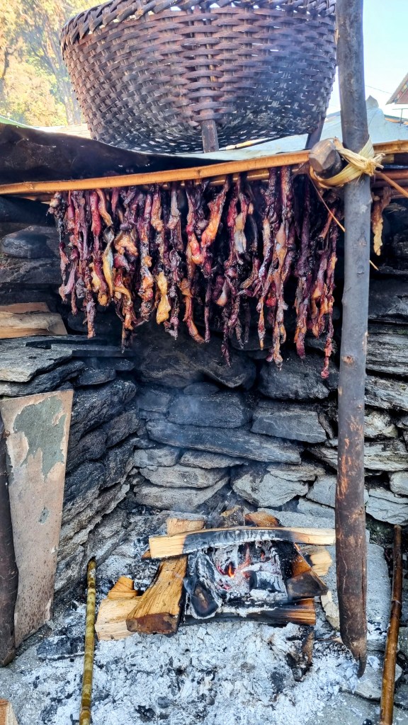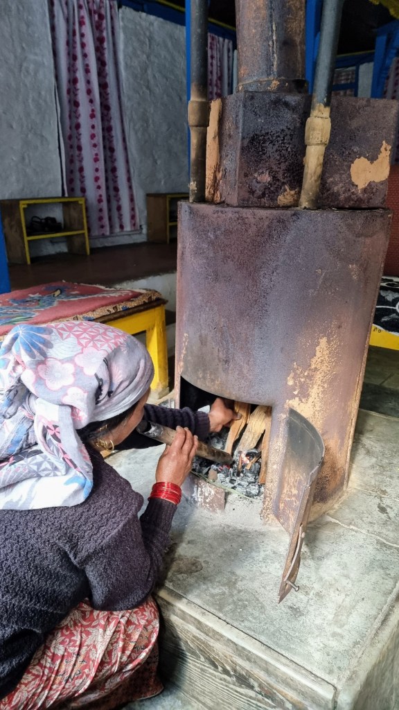 Le soir on trouve naturellement notre place autour d’un gros poêle en métal rouillé, en compagnie des femmes affairées à débiter en fines lamelles des radis blancs géants, destinés à garnir la provision de vivres pour cet hiver. Quelques discussions éphémères avec nous ou entre elles viennent ponctuer de temps à autres un silence enveloppant et bienfaisant. On savoure allongé sur le banc presque collé à la tôle brûlante, les frasques de quelques anarchistes et hors la loi du livre de Maréchaux, déroulant les vies au galop du poète François Villon ou encore de l’écorchée vive Calamity Jane. Les odeurs de radis frais et les conversations népalaises se mélangent aux révoltes perdues de Bobby Sands, aux évasions maritimes d’Henry de Monfreid :