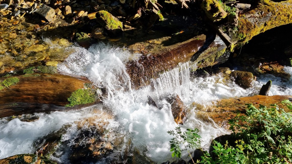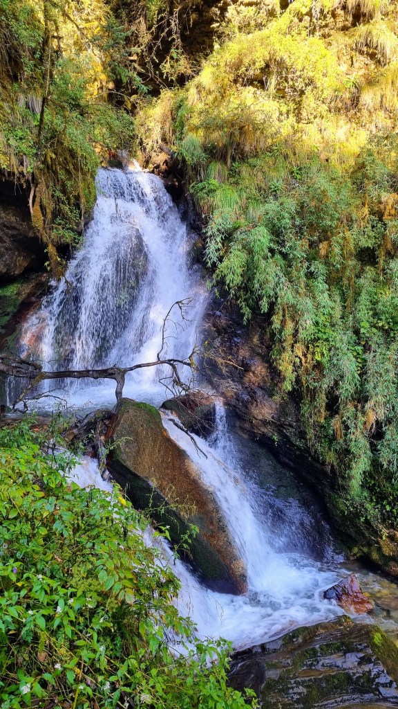 Le lendemain, on quitte les lieux à six heures, lorsque le jour nous permet de voir où placer les pieds sur le sentier. C’est certainement le moment le plus grisant de la journée. Les corps encore froids retrouvent les automatismes de la veille pour avancer. Et tout l’esprit est mobilisé dans la découverte d’un paysage inédit qui s’éveille. Les lumières douces s’infiltrent dans les sous-bois, au travers des entrelacs des troncs rosés des rhododendrons. Les torrents, les cascades polissent les pierres dans des fracas furieux d’écume blanche. Un buffle égaré émerge d’un fourré, quelques chiens effectuent une liaison de reconnaissance entre deux hameaux dès le réveil. Évoluer au milieu de cette nature est un privilège que nous ne nous lassons pas de revendiquer dans chacun de nos pas.