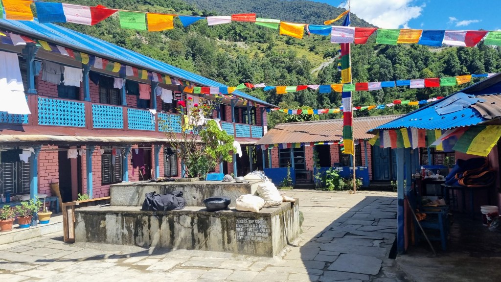 On courait le matin au bureau de l’administration de la ville et une demi-heure plus tard, nous étions en possession de nos permis de treks et de ceux qui donnaient accès à l’aire des Annapurnas. On préparait deux petits sacs, remplis d’un t-shirt et d’une brosse à dents, de quelques paquets de raisins secs et d’amandes, d’une veste de pluie, d’une polaire et puis d’une gourde.