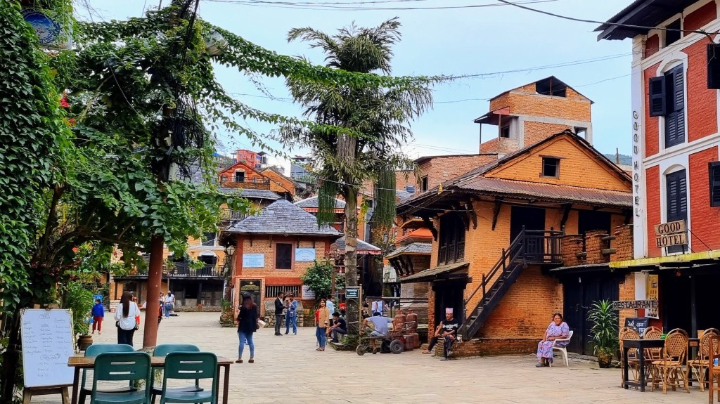 Un livreur de gaz s’échine à tirer sa lourde carriole ; une femme, lanière de tissu sur le front, porte sur son dos courbé une hotte en osier chargée de denrées. Des touristes népalais se prennent en photos devant un petit temple du seizième siècle, font tinter une cloche située au fronton pour se protéger d’un destin hasardeux, puis iront lorgner les ardoises appétentes des restaurants de rue. On est encore loin du tourisme de masse, car la route mauvaise pour accéder au village l’en préserve. Et l’on s’y sent bien parce que le rythme y est encore mesuré et le sourire aimable.