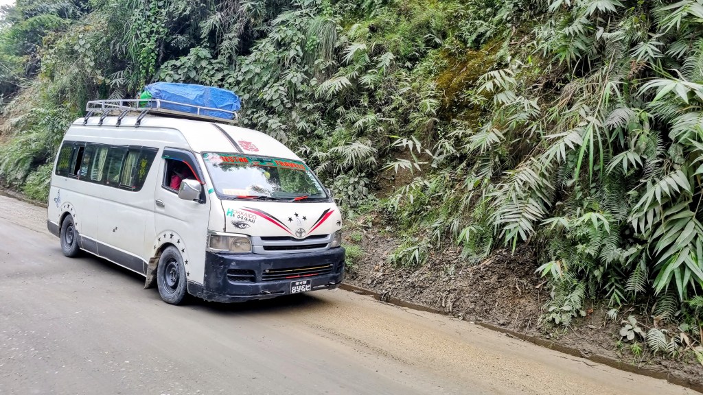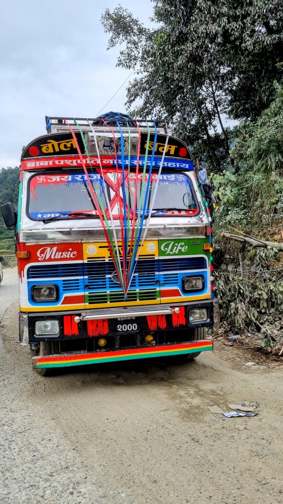 L’avantage confortable lorsqu’on monte en avance dans un bus, c’est qu’on peut éventuellement obtenir une place assise. Ce qui rend la chose moins attrayante, c’est qu’il faut attendre parfois longtemps avant que celui-ci soit rempli jusqu’à ras bord et qu’il enclenche enfin la première vitesse. Les minutes passent, immobiles, dans un bus perché sur une colline du Népal…