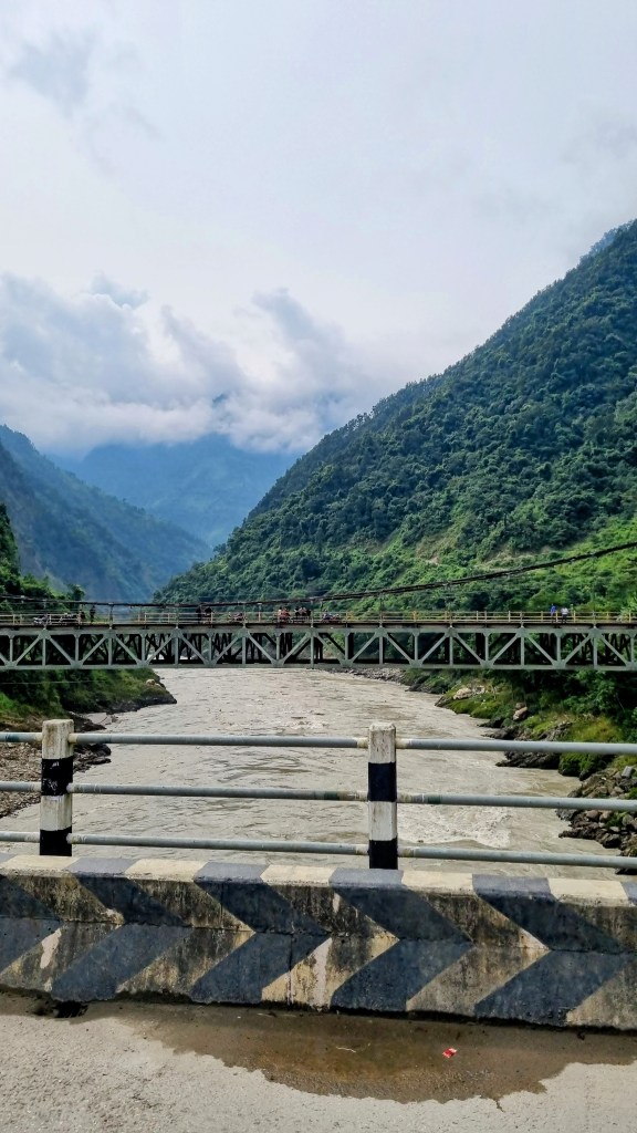 Le lendemain de notre arrivée à Bandipur après cet épisode routier chaotique, nous recevions une alerte des autorités françaises déconseillant d’emprunter les moyens de transports locaux et de dormir à proximité des cours d’eau au Népal suite aux pluies importantes de mousson. Notre naïveté étant sans borne, nous avions successivement coché les deux propositions. Nous mettrons entre cinq et six heures pour parcourir soixante-dix kilomètres « d’autoroute ». Quant à notre dernière halte au bord de l’eau chez l’habitant quelques jours auparavant dans les Annapurnas, la fatigue de la marche nous avait empêché de nous en inquiéter outre mesure mais nous avions effectivement bien remarqué que le ruisseau franchi la veille en jonglant sur quelques cailloux alors émergés étaient, au petit matin, devenu infranchissables.