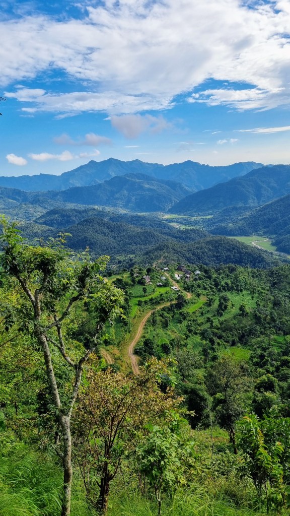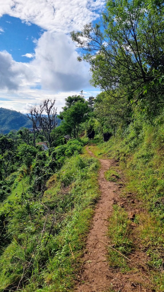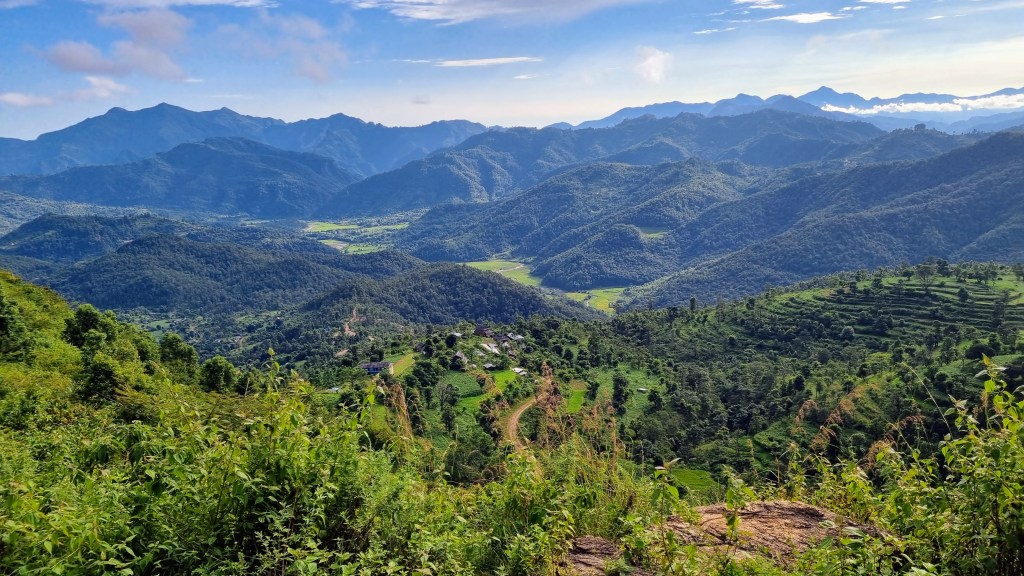 Plus tard, on atteindra le village de Ramkot par un sentier qui part de Bandipur et longe une colline voisine en s’élevant progressivement au-dessus d’un paysage verdoyant de champs et de rizières. On grimpe, on redescend, on change de versant pour remonter à travers les fougères, joie des escapades buissonnières en montagne, le relief joue avec nos jambes pour offrir à chaque virage un tableau de maître paysager.