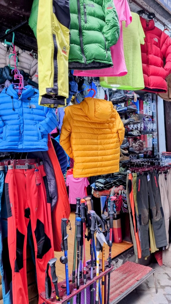 L’autre quartier du centre est Thamel. Lorsque vous marchez à la périphérie de la ville, tous les taxis, qui ne comprennent pas ce que vous faites ici, vous interpelleront avec cet unique mot « Thamel » à la bouche car c’est là que les touristes en principe se regroupent. Quartier de guesthouses, d’hôtels en tout genre, les vitrines alignent les restaurants népalais ou indiens, explorent une nourriture plus exotique italienne, américaine ou même bretonne. Européens, américains atterrissent à quelques kilomètres de là et s’installent quelques jours afin de préparer une future expédition dans l’Himalaya proche.