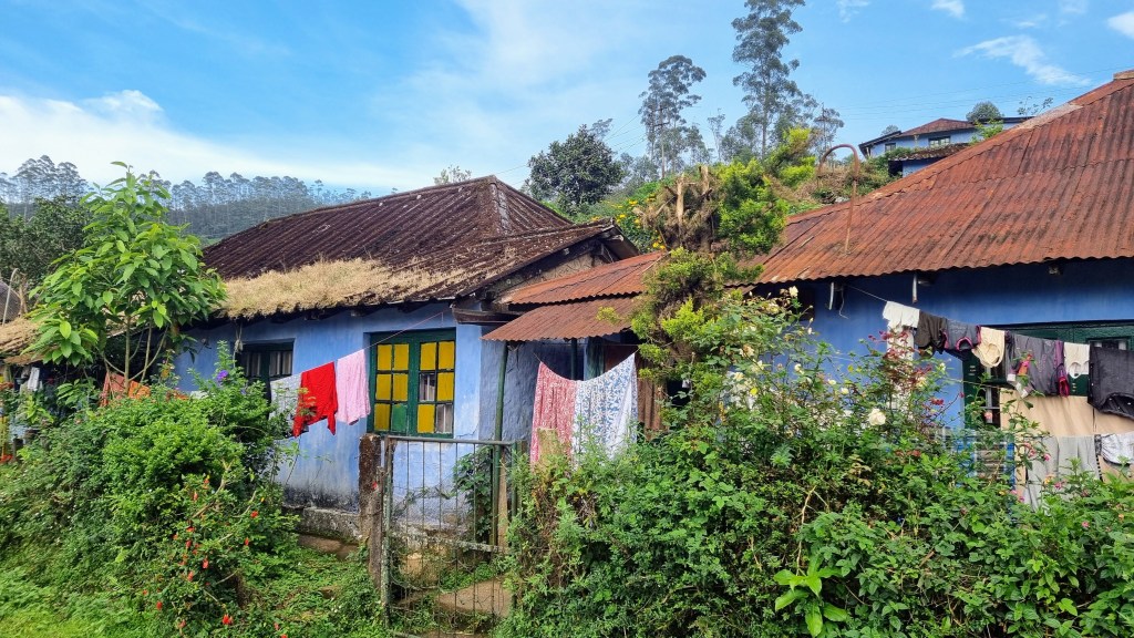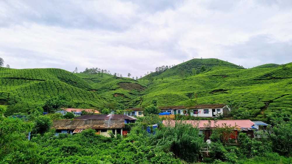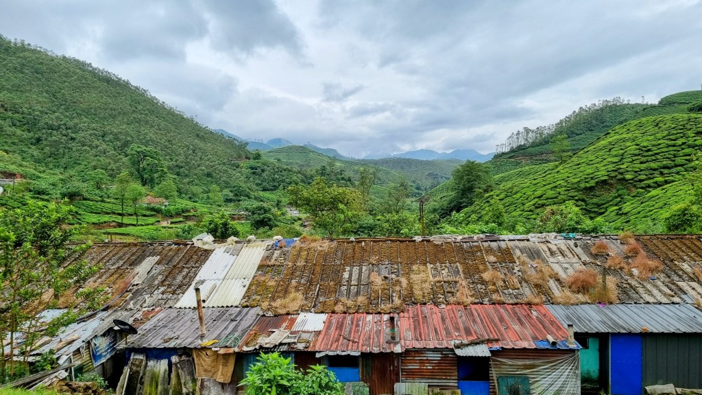 Un village, des hameaux sur la propriété, logent les employés. Des petites maisons, bleues délavées pour nombre d’entre elles, sont posées en grappes au beau milieu d’une mer végétale. On y trouve tous les attributs d’une communauté classique dotée d’un temple ou d’une église, d’une école, d’une cantine ouvrière ou bien par exemple d’une épicerie. La différence majeure avec d’autres villages réside dans le fait qu’ici tout appartient à Tata. Les employés peuvent y vivre en quasi autarcie. La contrepartie de ce modèle patriarcal où l’emploi, le logement et le quotidien sont organisés entièrement par l’employeur, réside évidemment dans la marge de liberté des salariés. En 2015, six mille ouvrières tamoules travaillant sur les plantations déclenchèrent une grève pour protester contre la baisse annoncée d’un bonus à la récolte. Elles dénonçaient en réalité une situation très dégradée et opaque, derrière les barrières et les barbelés des plantations, et elles soulignaient l’existence d’une différence de traitement flagrante en comparaison du niveau de vie du reste du Kerala.
