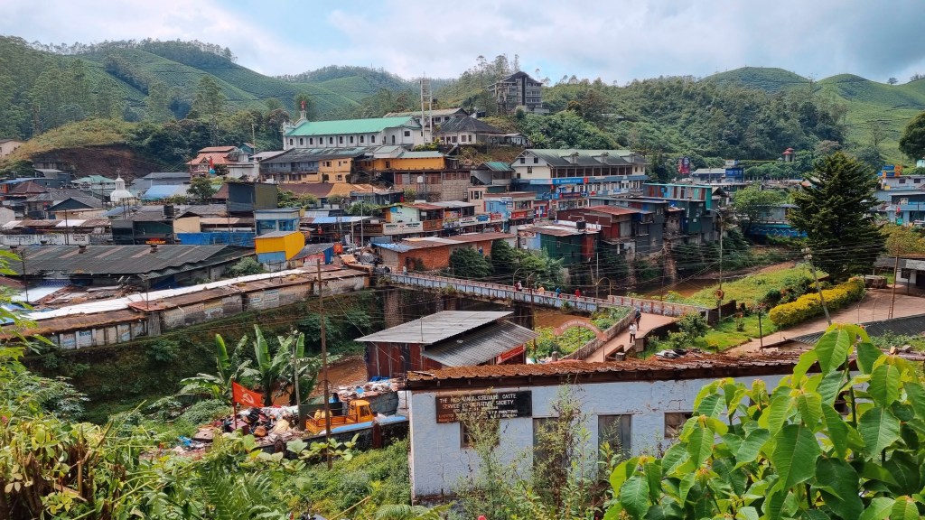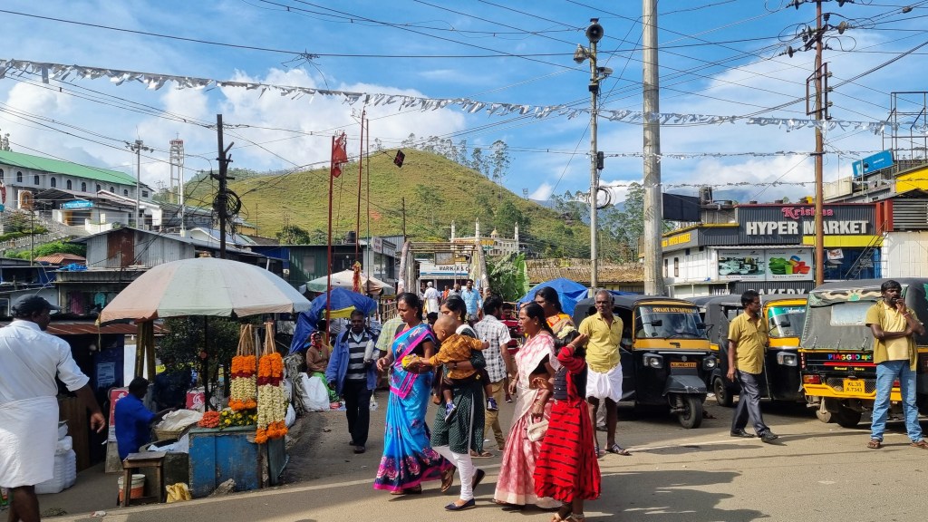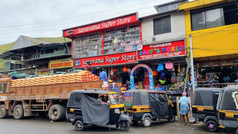 Munnar, en début de soirée. La ville est indienne, épanouie dans une anarchie luxuriante. Les tuk-tuks font des bruits de casseroles s’élevant jusque dans les premières travées de théiers. Les femmes en saris glissent toutes les couleurs du monde dans les rues en pentes grises.