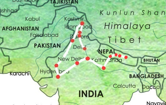 Leh, Lamayuru, Saspul, Manali, Amritsar, Jodhpur, Jaipur et Udaipur, Agra, Varanasi et aussi Dehli, Goa, Pajani, Cochin, et puis Munnar, Pondichéry, Mamallapuram, Madras enfin ou plutôt désormais Chennai, et puis d’autres aussi bien sûr. L’Inde aurait pu ressembler à une longue litanie de noms exotiques. Mais en trois mois, ce nom s’était chargé dans nos têtes incultes, de reliefs et de couleurs qui transformèrent une simple liste d’un atlas de géographie en un roman épique gravé dans les méandres de nos mémoires et sous la plante de nos pieds.