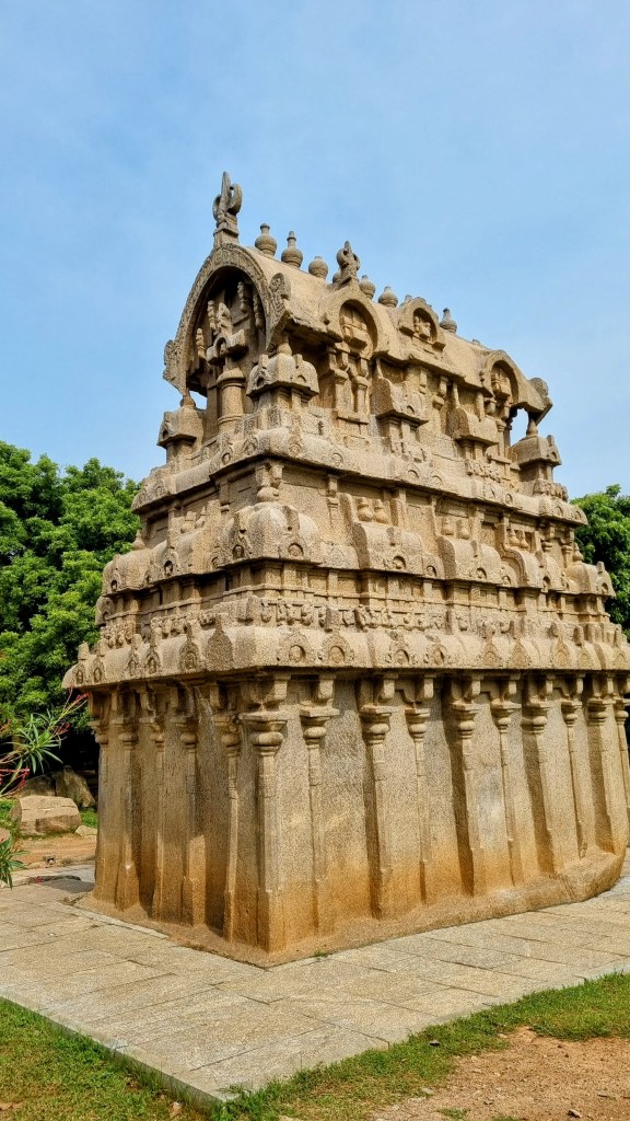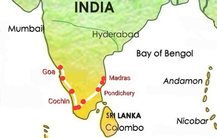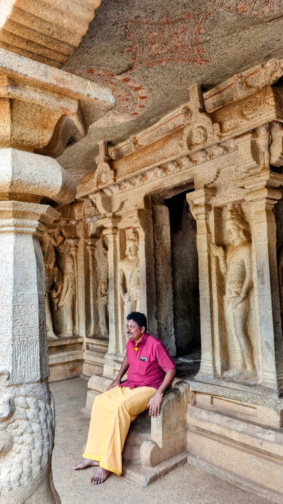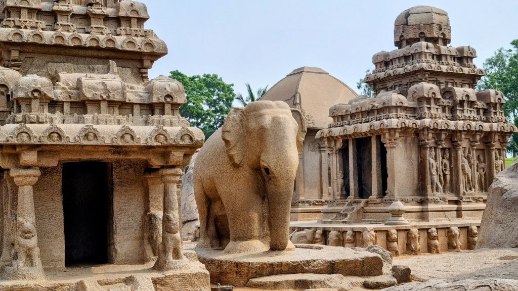 Nous visitions ce matin le site archéologique de Mamallapuram, vestige extraordinaire d’une dynastie Pallava qui s’évertua, au septième siècle, à tailler des rocs gigantesques de granit rose au bord de l’eau. A contempler les éléphants superbes gravés dans la roche, les danseurs gracieux et les palais sculptés d’un seul tenant dans ces pierres rosées, il nous revenait en mémoire, signe annonciateur d’une fin certaine, ces noms fabuleux qui avaient jalonné notre parcours dans le sous-continent indien durant ces derniers mois.