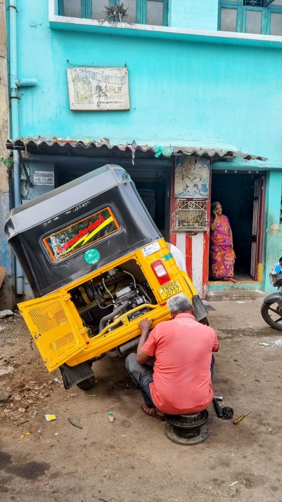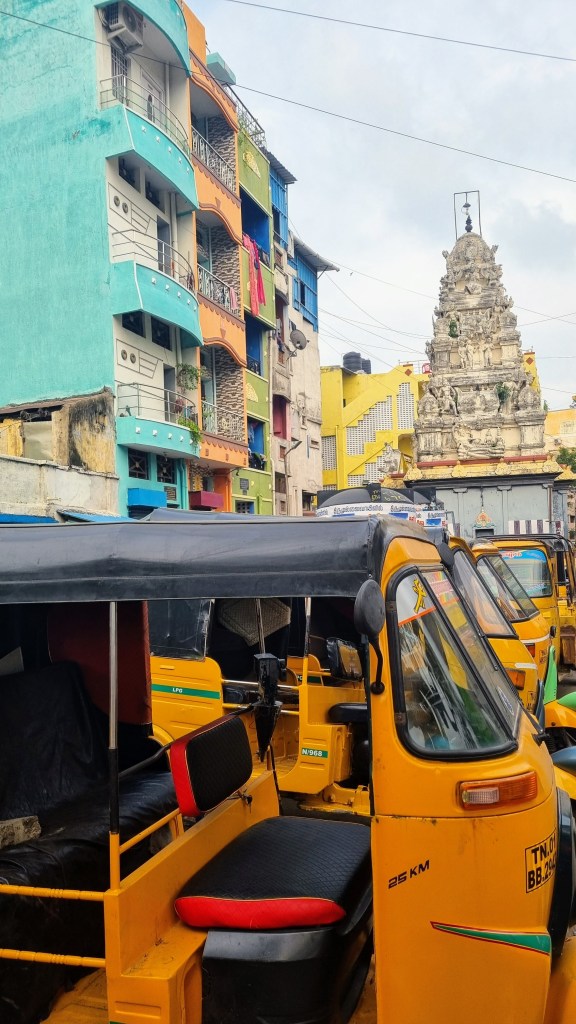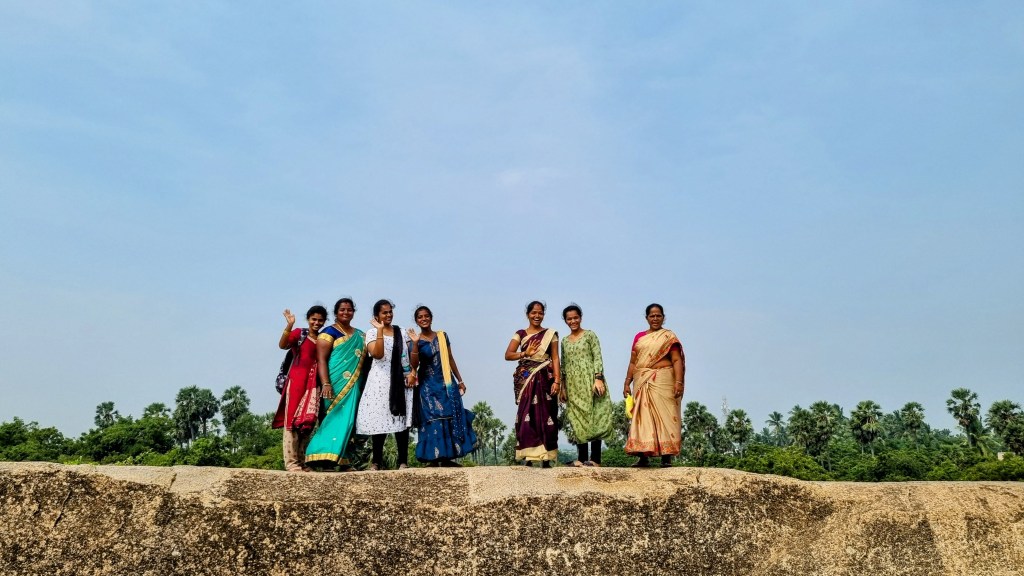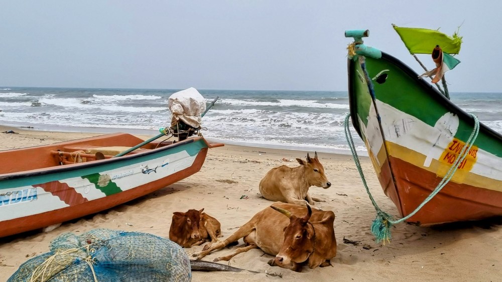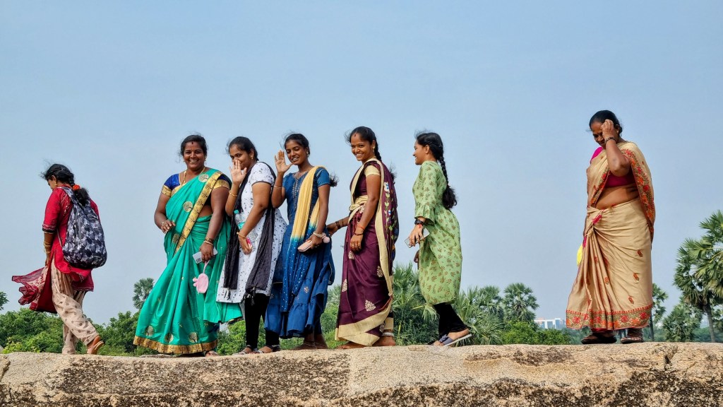 Nous avons rencontré hier à Mamallapuram, alors que nous étions perchés sur un rocher de granit rose, un groupe de jeunes filles en promenade. Sans aucune raison, elles se sont mises à battre des bras et nous faire de grands signes, à nous appeler en criant et riant, et puis finalement quand nous les avons regardé, elles ont arboré un éclatant sourire, simplement sublime. Elles étaient radieuses et l’énergie de ces inconnues magnifiques nous a immédiatement touchés en plein cœur. Ce pays ne nous aura vraiment rien épargné, pas même des adieux impromptus au détour d’un rocher de bord de mer, offerts par une troupe de jeunes femmes furieusement joyeuses et débordantes de vie. On nous avait prévenus, l’Inde n’avait jamais prévu de laisser quiconque traverser sa terre en paix.