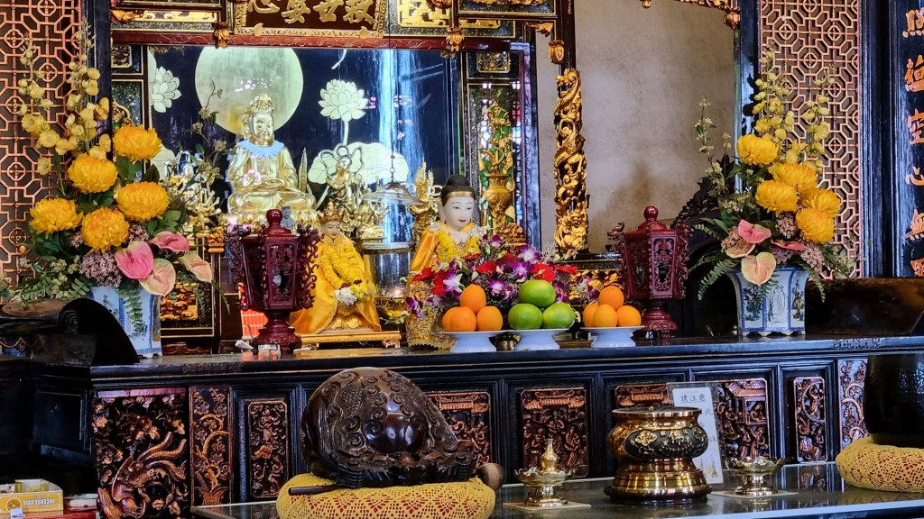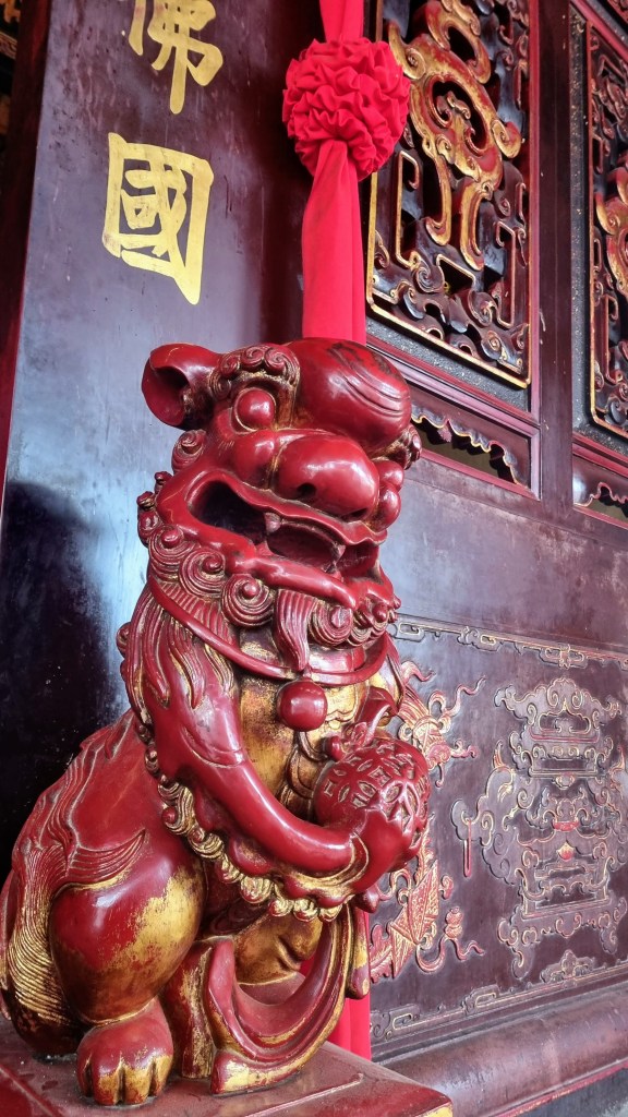 Les rues étroites aux anciennes demeures s’emmêlent à l’abri du canal, sans ordre apparent. Des pagodes chinoises recèlent, sous des toits de tuiles recourbés des oratoires en bois laqués, des planchers vernis qui viennent taper contre des murs ornés d’enluminures exquises, d’idéogrammes d’ors et de mystères. Au plafond, des lanternes rouges sang en papier attendent la nuit pour faire dériver les regards et les esprits vers la Chine.