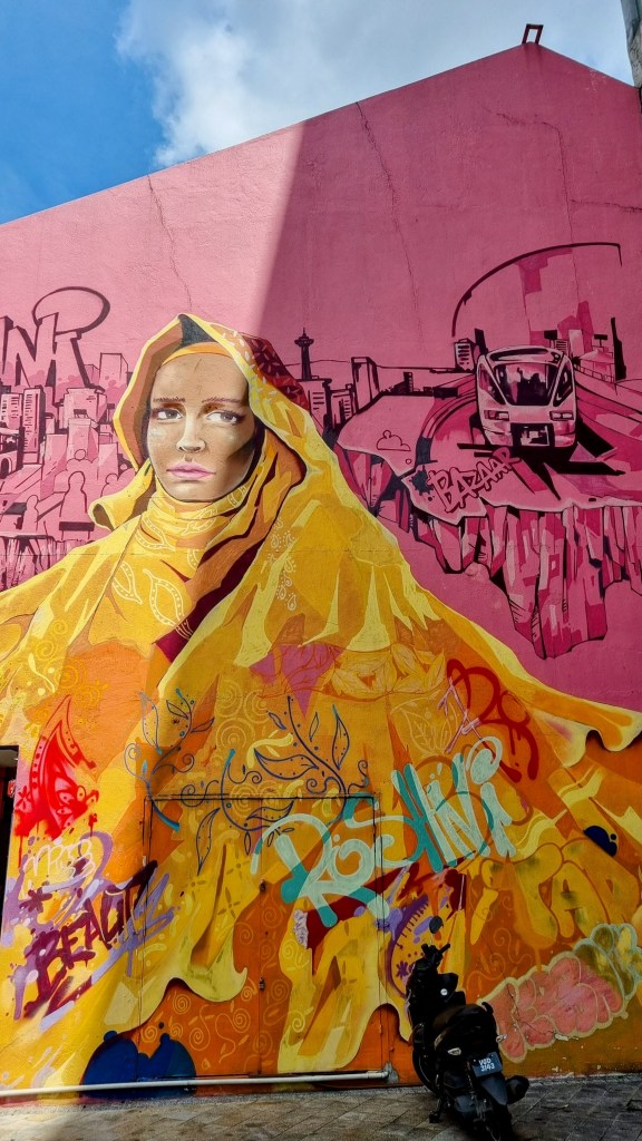 Kuala Lumpur se charge de nous replonger le lendemain dans l’énergie électrique des capitales de la planète. Débarqués dans une gare routière de premier plan du sud de la ville, où tout le pays se croise dans un grand hall semblable à celui d’un aéroport, nous rejoignons le cœur de ville par le métro aérien. Nous logeons dans un quartier dédié, semble-t-il, au commerce du textile où de grands magasins proposent presqu’uniquement et en nombre, abayas et hijabs, les tenues traditionnelles des malaisiennes musulmanes, quand sur les trottoirs défile une mode débridée, du short échancré adulé par les femmes d’origine chinoise au justaucorps fluorescent des sportives dynamiques trentenaires citadines. Si la foi musulmane est déclarée religion d’état, elle n’en est pas moins tolérante à l’égard de l’autre moitié de la population, bouddhiste, taoïste, chrétienne ou hindouiste. Et l’on retrouve naturellement cette volonté affichée d’ouverture sur les trottoirs de la capitale.